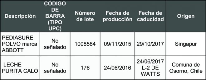 La autoridad alimentarias aclaran que los lotes de leche en polvo contaminados marca Pediasure y Purita Calo no han ingresado al país