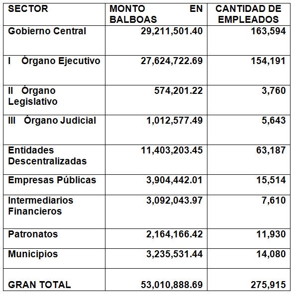 El Gobierno Nacional desembolsará unos 53 millones 10 mil 888 balboas con 69 centésimos a beneficio de 75 mil 915 funcionarios.
