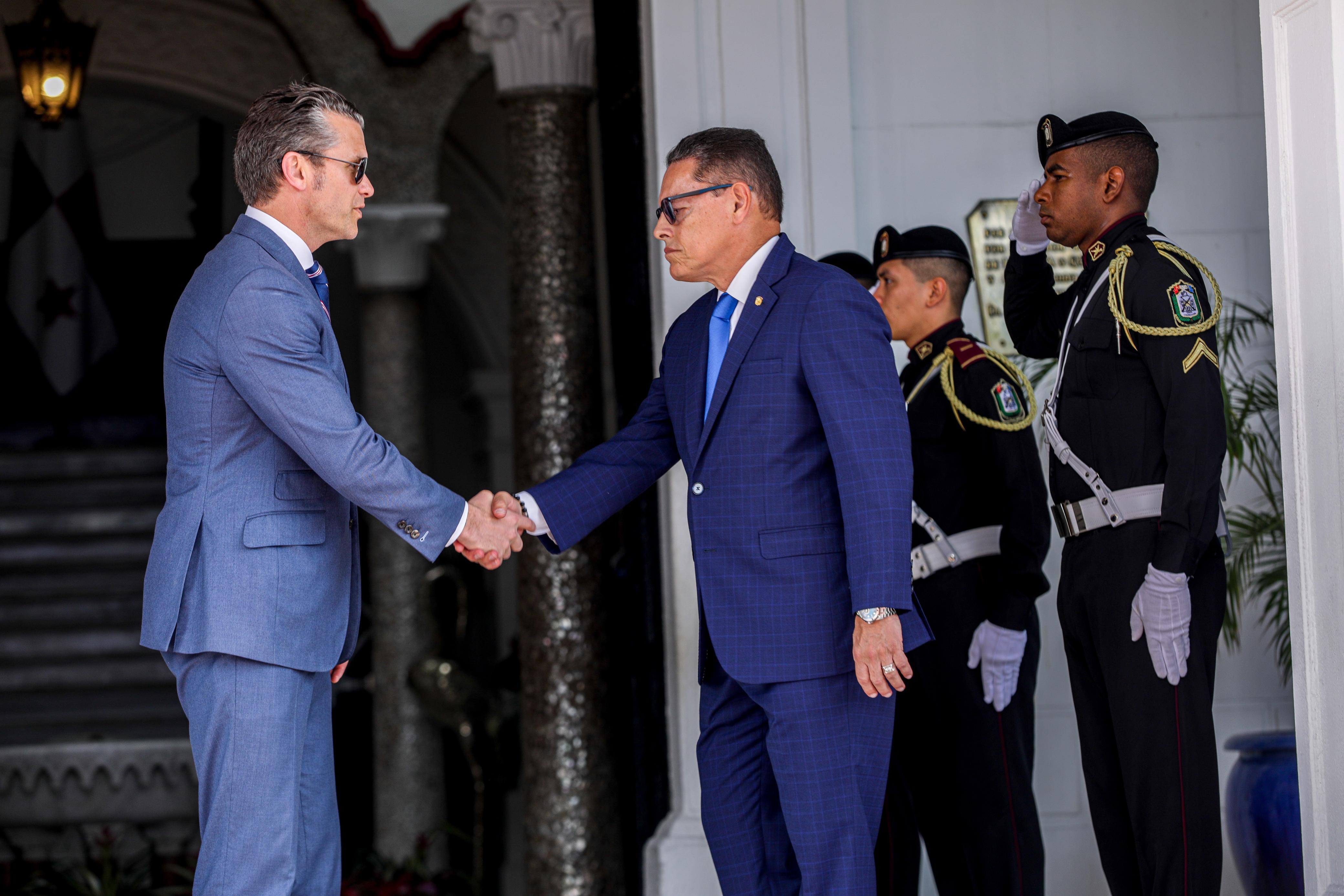 El Secretario de Defensa de Estados Unidos, Pete Hegseth, fue recibido la mañana de este martes en el Palacio de las Garzas, donde se reunió con el presidente José Raúl Mulino y el ministro de Seguridad de Panamá, Frank Ábrego.
