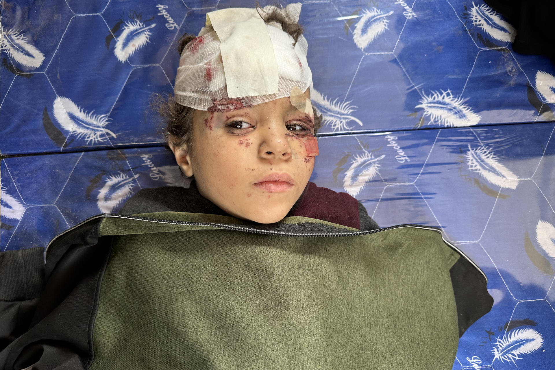 Un hombre lo envuelve en una manta y, tras vendarle una herida en la cabeza, lo traslada con rapidez a una ambulancia camino al hospital Al Ahli, también en ciudad de Gaza y donde han llegado más de 40 heridos.
