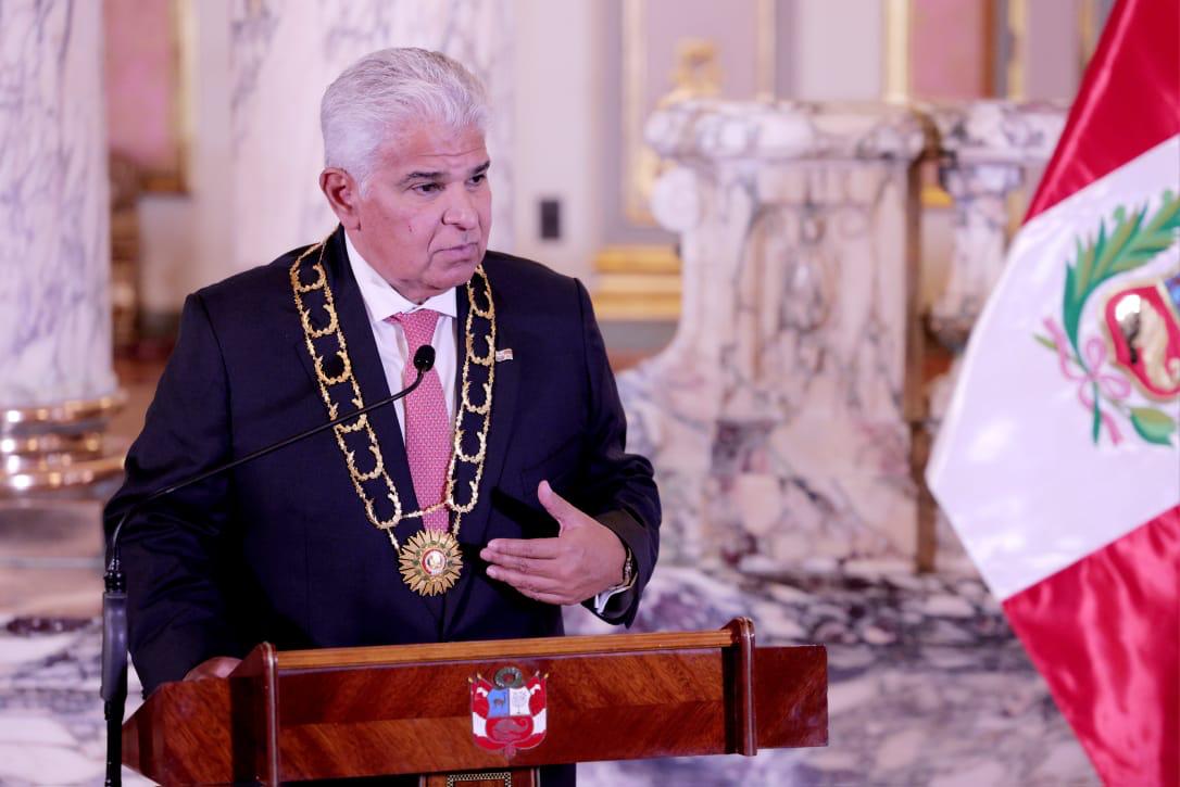 Este viernes, el mandatario panameño participó de la colocación de una ofrenda floral en el monumento a los Próceres y Precursores de la Independencia, luego se trasladó al Palacio de Gobierno, donde celebró una reunión oficial con la presidenta Dina Boluarte.