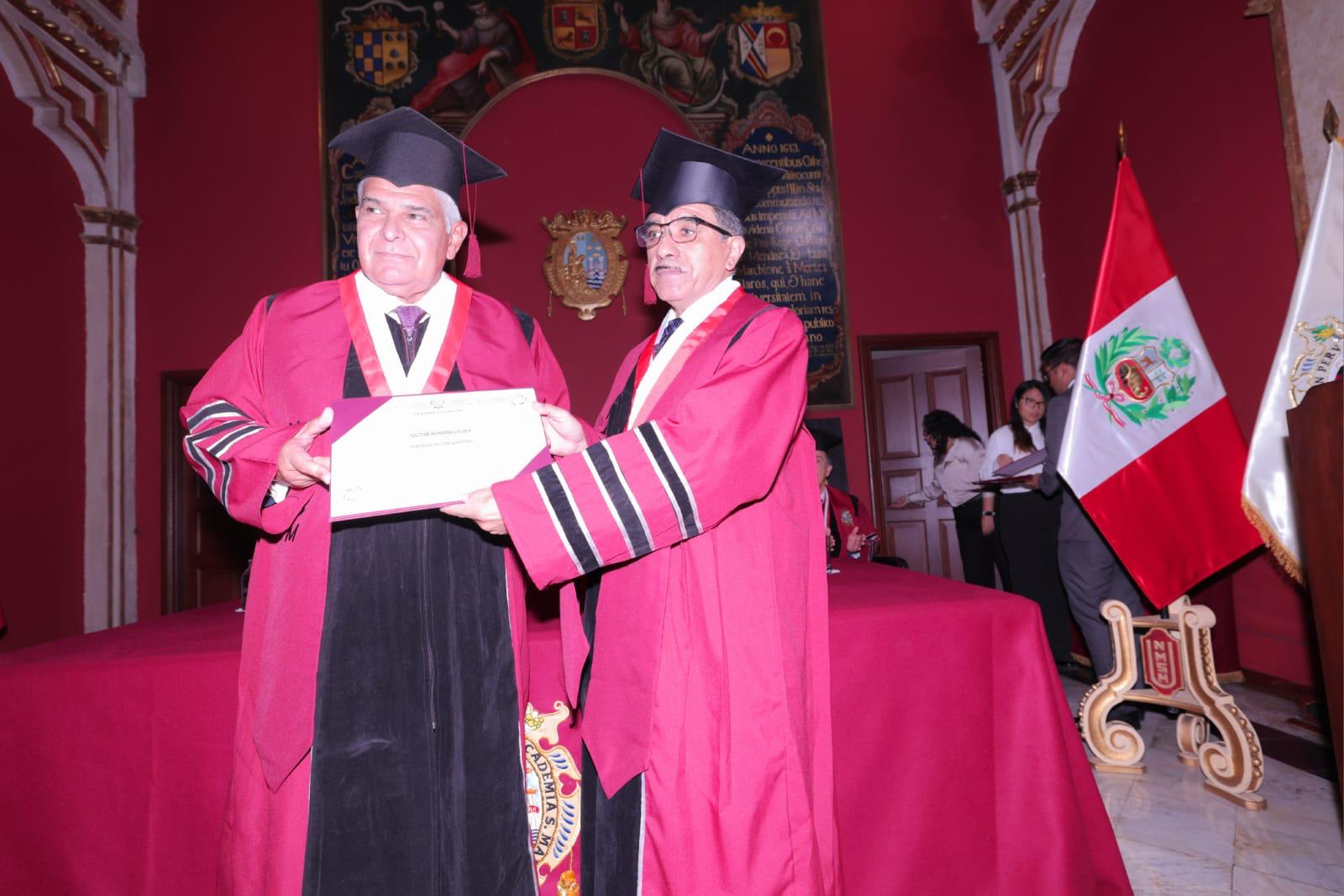 El presidente José Raúl Mulino, fue homenajeado este viernes por la Universidad Nacional Mayor de San Marcos de Perú, como un reconocimiento a su exitosa trayectoria académica y profesional, con un importante impacto en el bienestar social de los panameños, informó la oficina de prensa de la Presidencia.