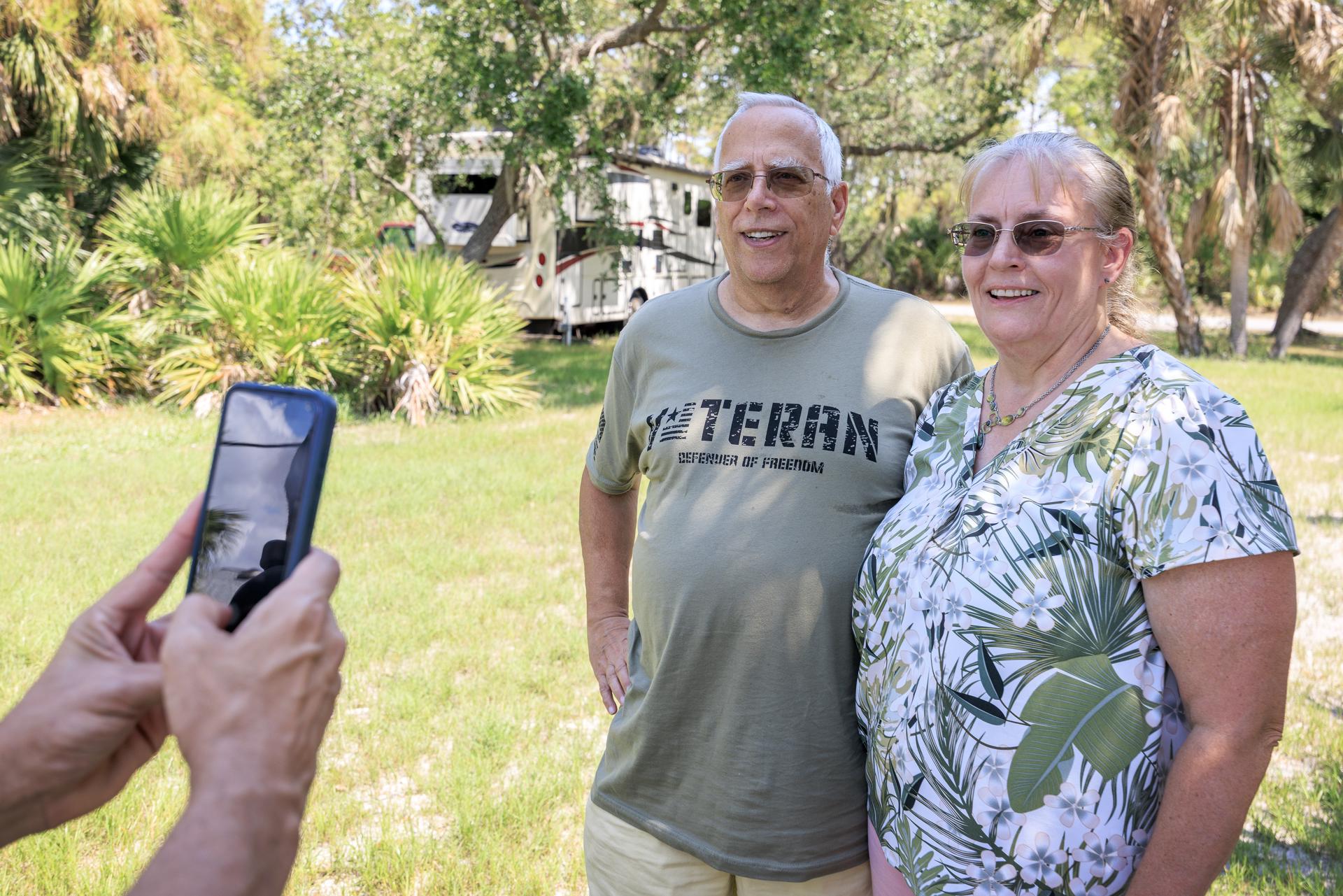 PORT CHARLOTTE (United States), 09/05/2025.- Louis Prevost (L), brother of the Pope Leo XIV, poses with his wife Deborah (R) at his home in Port Charlotte, Florida, USA, 09 May 2025. Pope Leo XIV is the first American to be elected pope. (Papa) EFE/EPA/CRISTOBAL HERRERA-ULASHKEVICH