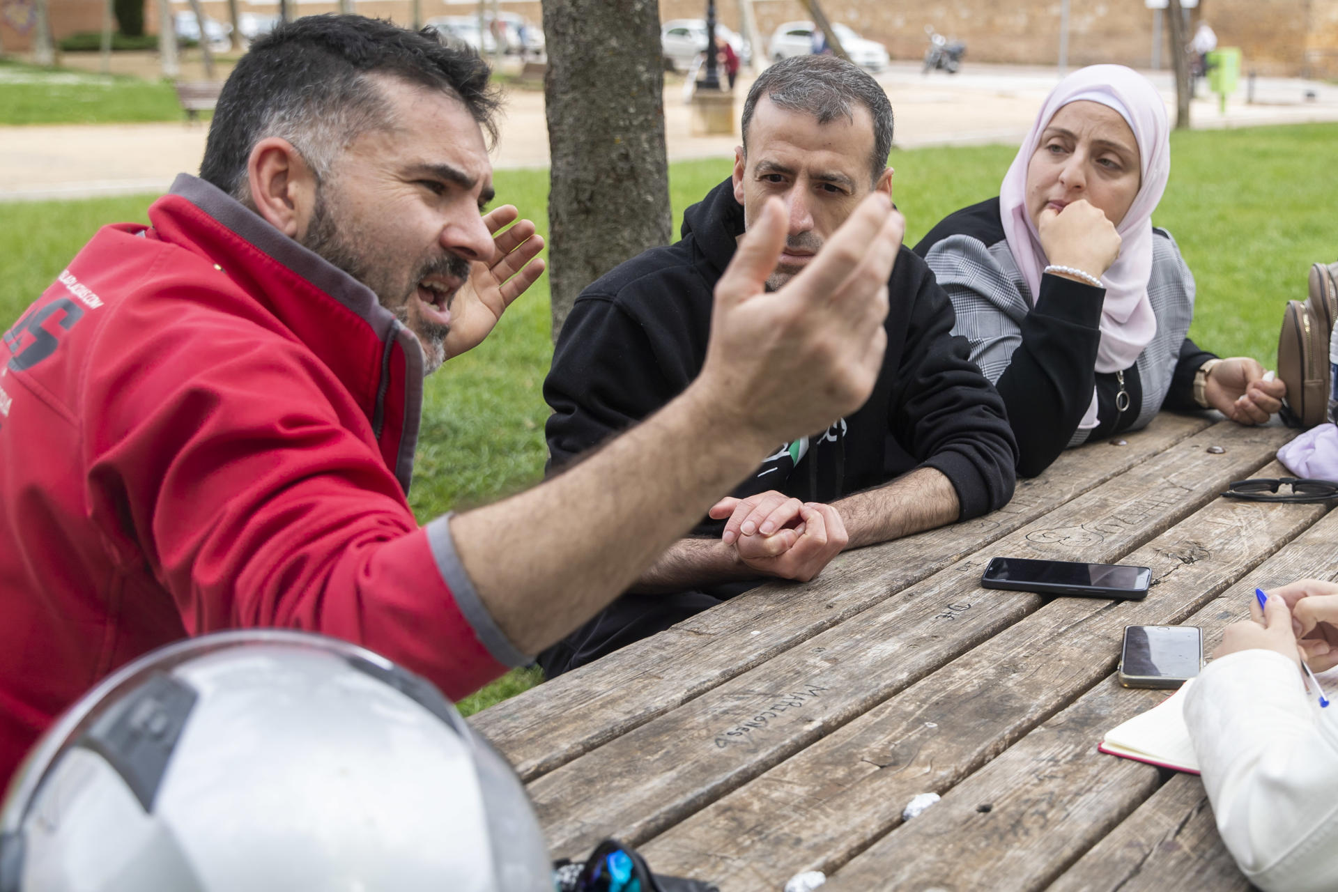 Mohammed y Asmaa recuerdan el doloroso proceso que les permitió llegar a España tras cinco años de trámites con ACNUR. Su travesía incluyó una salida arriesgada por el aeropuerto Ben Gurión, un paso por Turquía, y finalmente, el destino seguro: Soria. Entonces, Asmaa estaba embarazada del tercero de sus hijos.