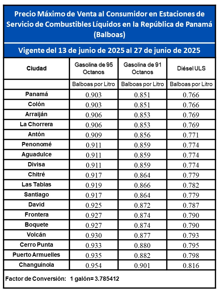 El informe destaca que estos nuevos precios regirán hasta las 5:59 a.m. del próximo viernes 27 de junio.