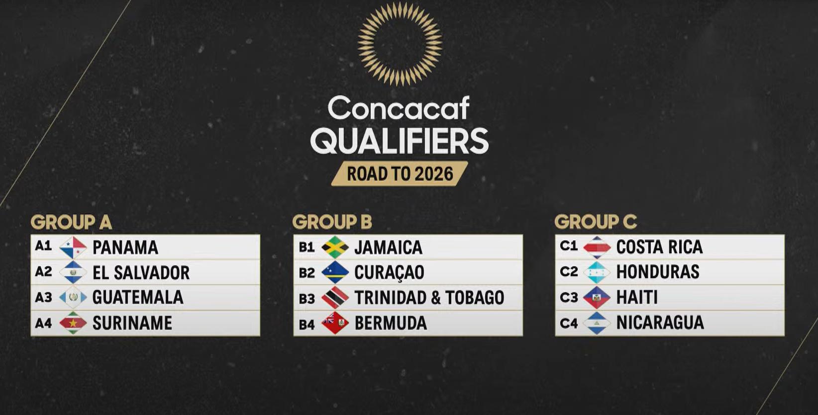 Así quedaron conformados los grupos: Grupo A: Panamá, El Salvador, Guatemala, Surinam; Grupo B: Jamaica, Trinidad y Tobago, Curazao, Bermuda; Grupo C: Costa Rica, Honduras, Haití, Nicaragua.