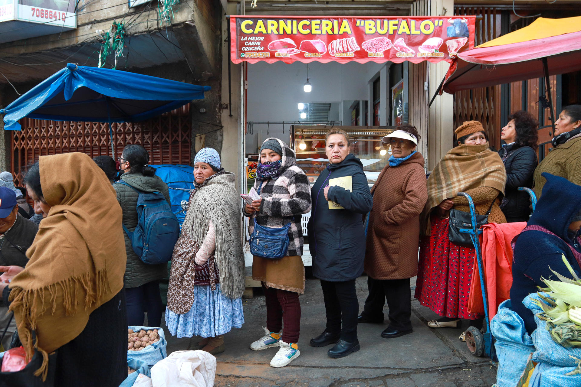 “Estamos haciendo fila por un pollo y peleándonos entre nosotros mismos, entre bolivianos. No es justo que vengan a mentir. Tenemos hijos, ¿cómo los vamos a mantener?”, reclamó Sonia Chura, una compradora entrevistada por EFE.