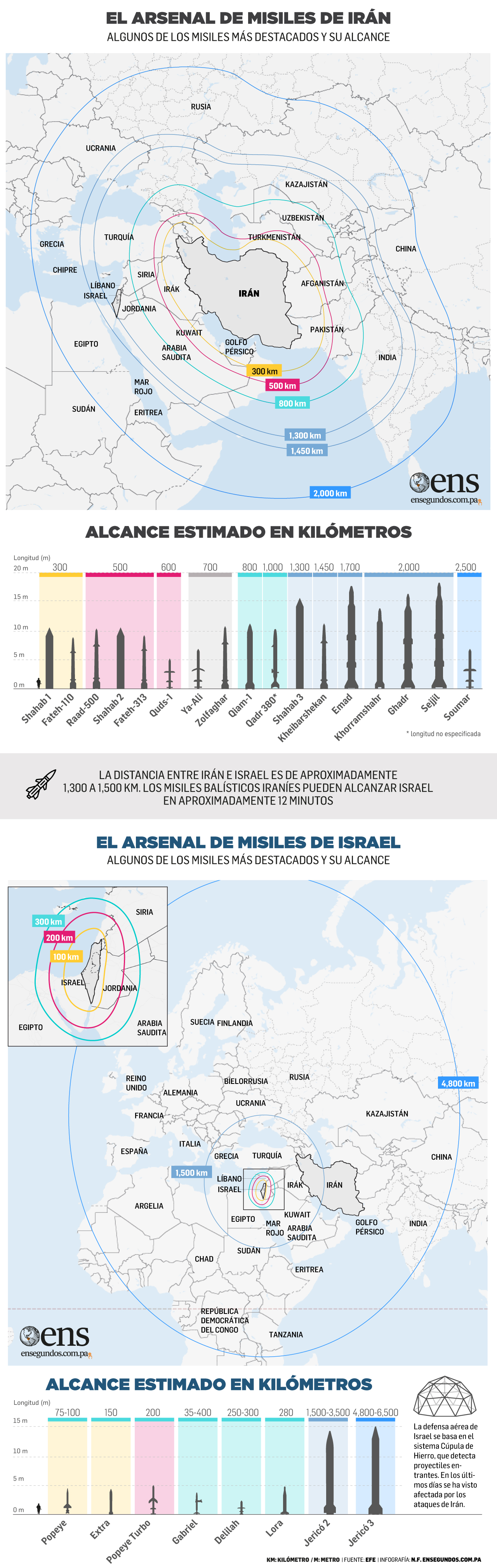 Guerra Irán posee el arsenal de misiles más grande y diverso de Oriente Medio, mientras que Israel cuenta con misiles avanzados que incluyen sistemas de largo alcance. Este es el inventario de misiles balísticos de dos países que mantienen una confrontación geopolítica e ideológica de larga trayectoria que en los últimos días se ha intensificado con ataques directos