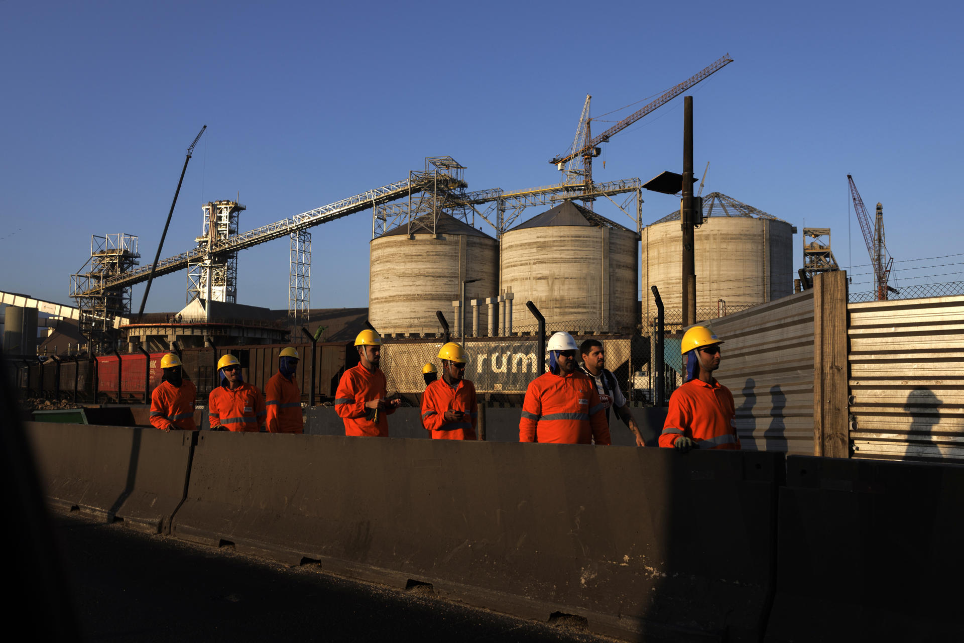 Fotografía de trabajadores en el puerto de Santos (Brasil). EFE/ Isaac Fontana