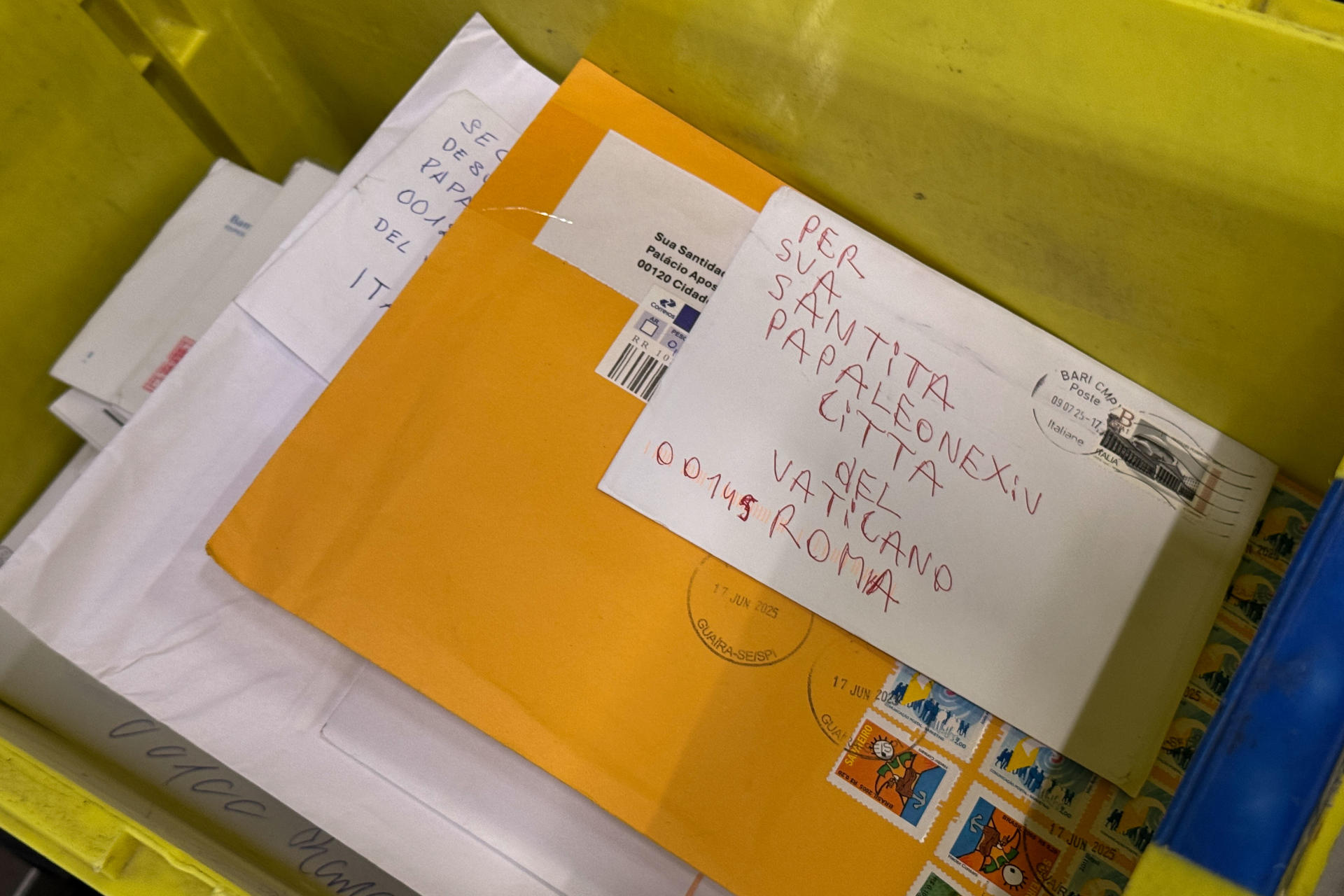 Sobres de todos los colores, en distintos tipos de papel, con letras infantiles o cuidadosas caligrafías, en múltiples idiomas e incluso en otros alfabetos, todos dirigidos a “Su Santidad Papa León” y con una dirección en común: La Ciudad del Vaticano.