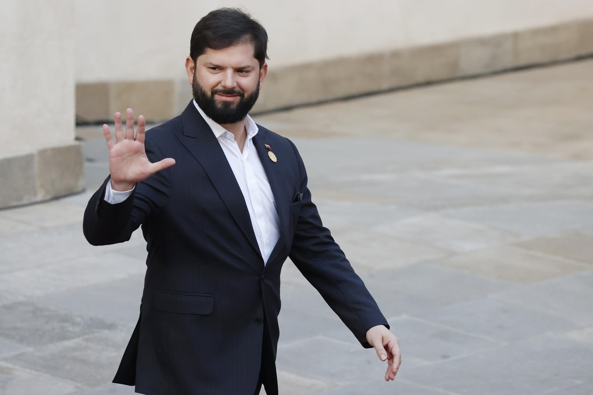 El presidente de Chile, Gabriel Boric, asiste a la cumbre en defensa de la democracia este lunes, en el Palacio de La Moneda, en Santiago (Chile). EFE/ Elvis González