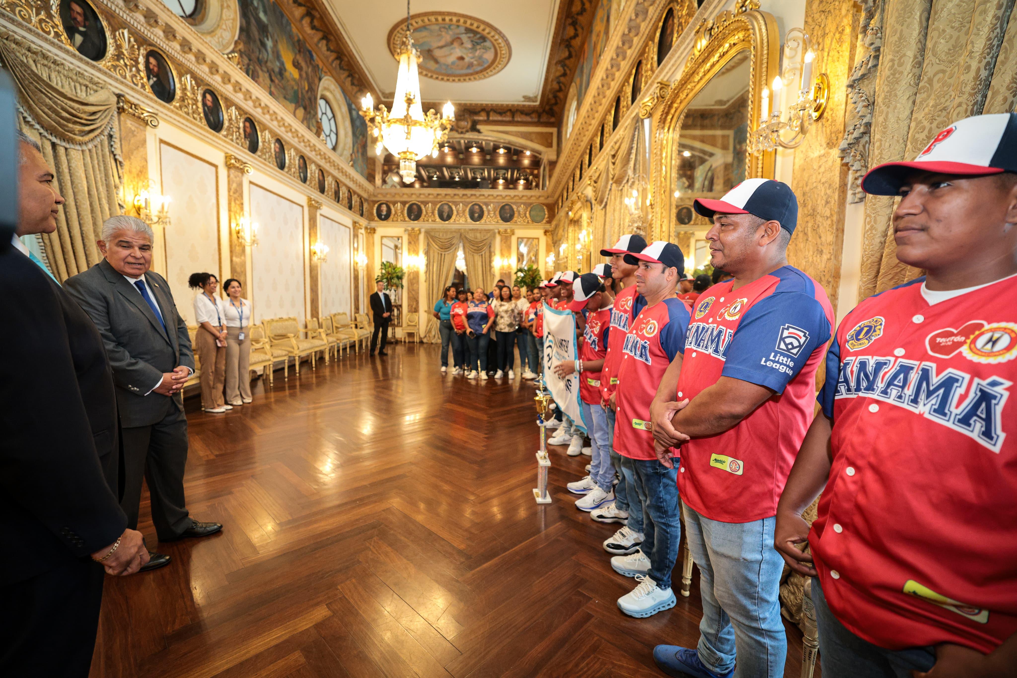 El presidente de la República, José Raúl Mulino, recibió este lunes en el Palacio de Las Garzas a los 13 jóvenes peloteros y cuerpo técnico que conforman la selección panameña de béisbol preintermedia, antes de su viaje a Taylor, Michigan, Estados Unidos, donde representarán a Latinoamérica en la Serie Mundial de Pequeñas Ligas, del 3 al 10 de agosto.