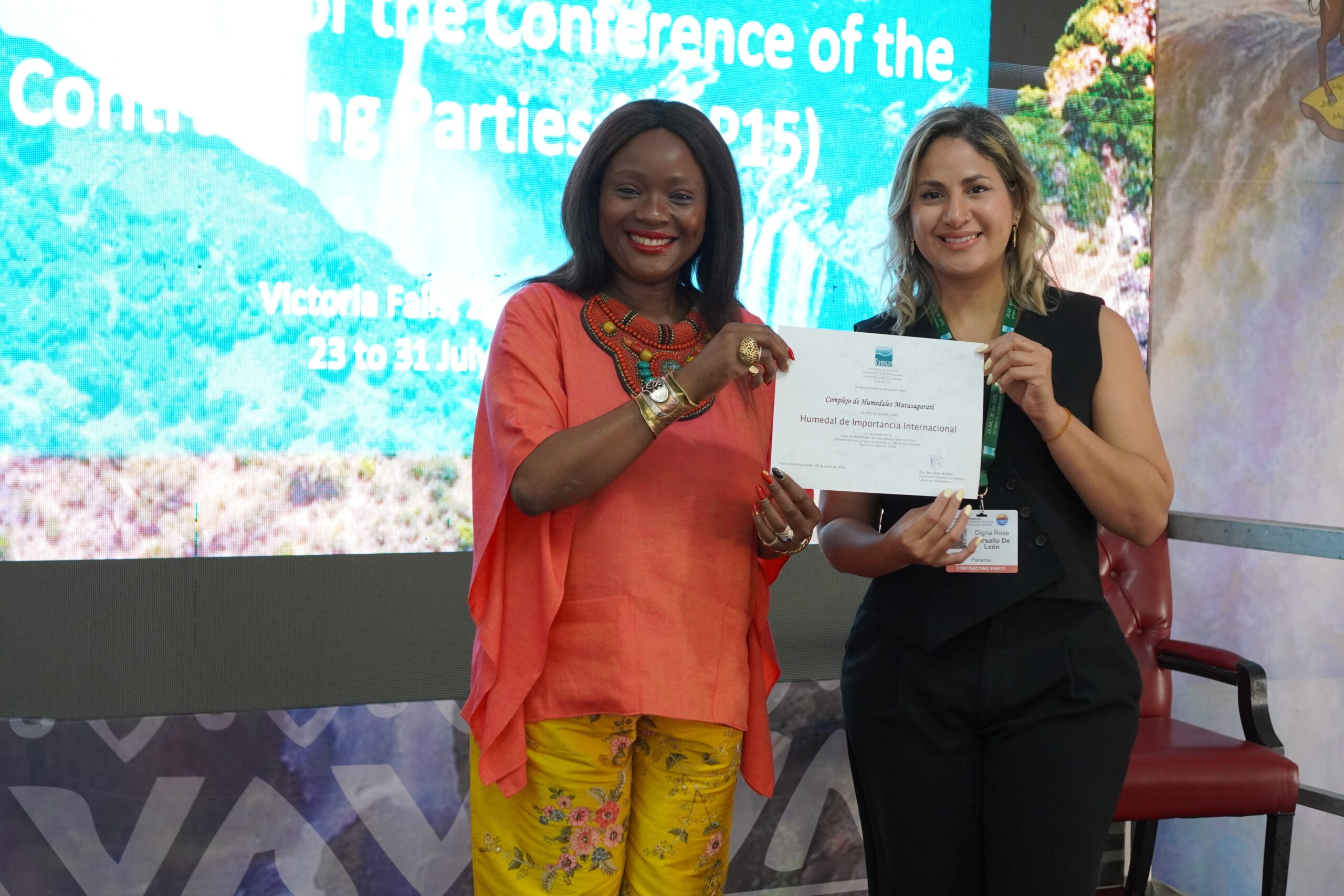 La institución señaló que la entrega de la certificación tuvo lugar durante la Conferencia de las Partes (COP15), que se celebra en Zimbabwe, y fue recibida por Digna Barsallo, directora nacional de Costas y Mares del MIAMBIENTE.