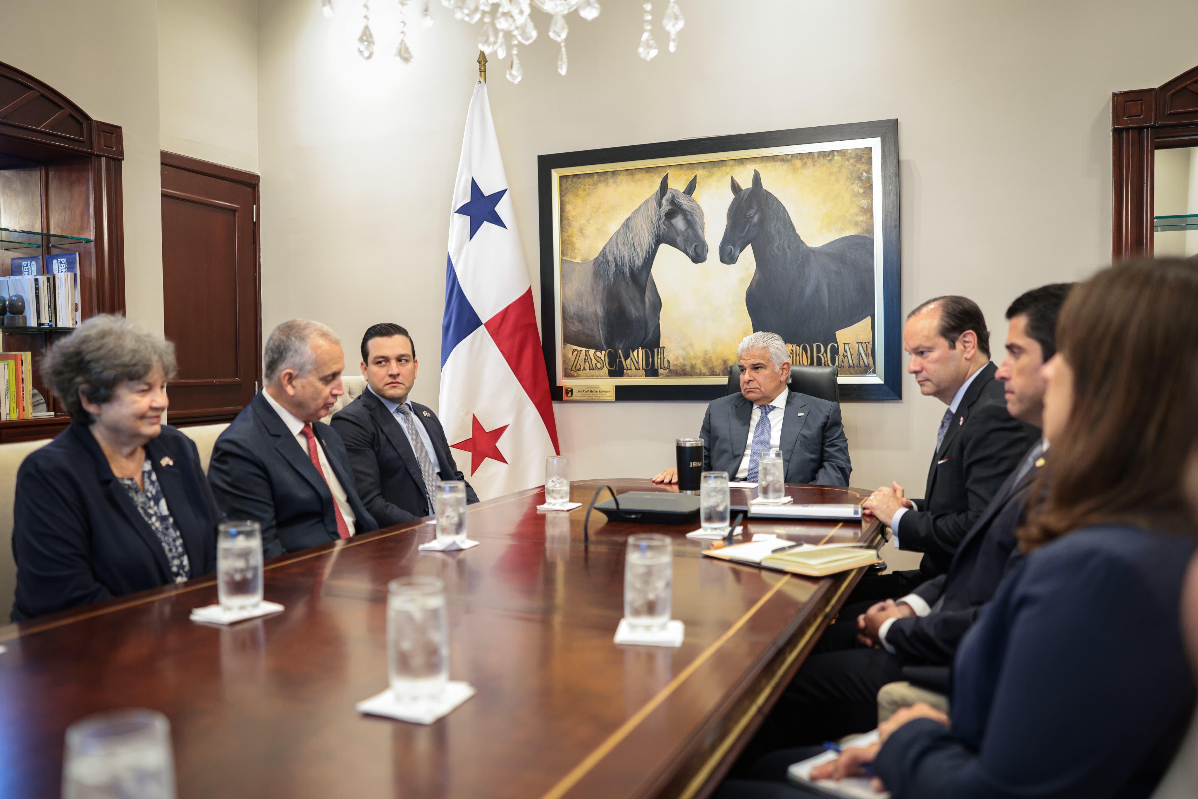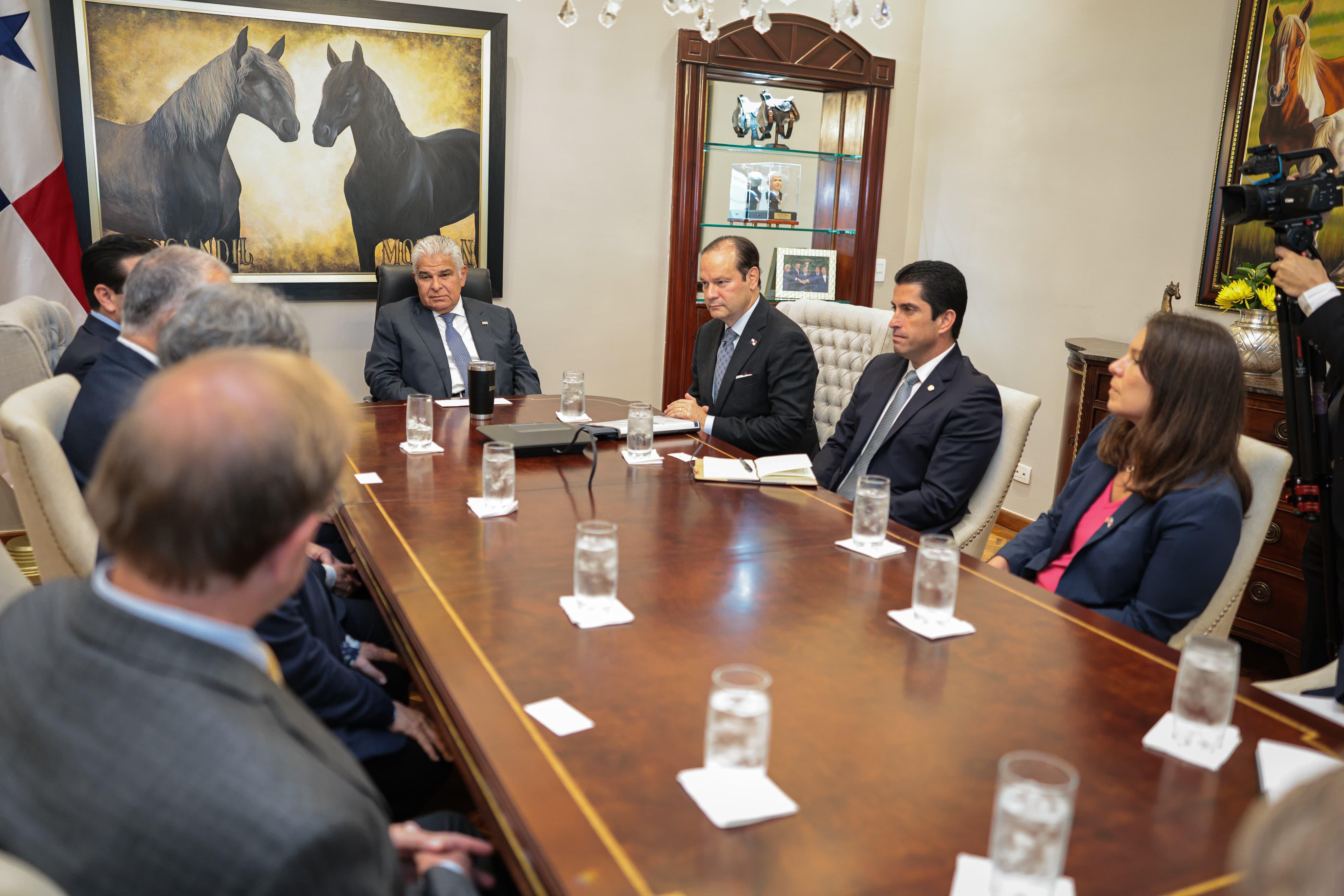 El presidente José Raúl Mulino recibió este miércoles en su despacho a una delegación de congresistas estadunidenses, con quienes compartió los principales logros de su gobierno en materia de seguridad fronteriza, lucha contra el narcotráfico y el crimen organizado, así como los planes de expansión en infraestructura logística nacional.