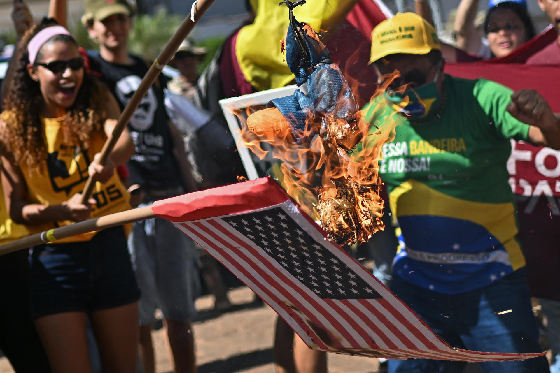 Asimismo, quemaron dólares falsos, muñecos de Trump y Bolsonaro, e incluso una bandera de Estados Unidos.