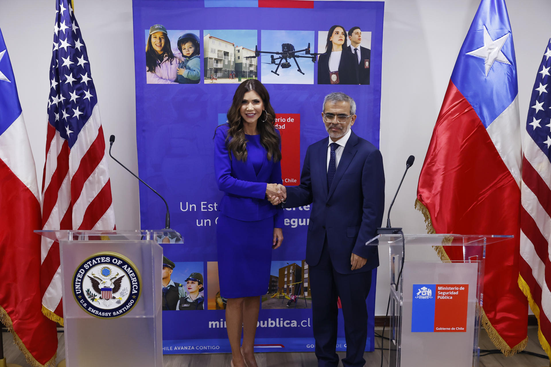 La Secretaria de Seguridad Nacional de Estados Unidos. Kristi Noem; y los ministros chilenos de Seguridad Pública y de Justicia, Luis Cordero y Jaime Gajardo, abordaron aspectos relacionados con la cooperación entre policías de ambos países y la seguridad fronteriza mediante la inversión en tecnología y el intercambio de información sobre organizaciones criminales como la banda transnacional Tren de Aragua, nacida en las cárceles de Venezuela y extendida en los últimos años por Colombia, Perú, Bolivia y Chile.