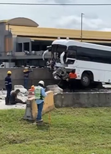 Las autoridades acordonaron el área, lo que ocasionó un tráfico denso en el área, mientras se removía el bus de manera segura y se procedía a la limpieza de los líquidos y fluidos esparcidos producto del impacto, señaló el coronel Delgado.