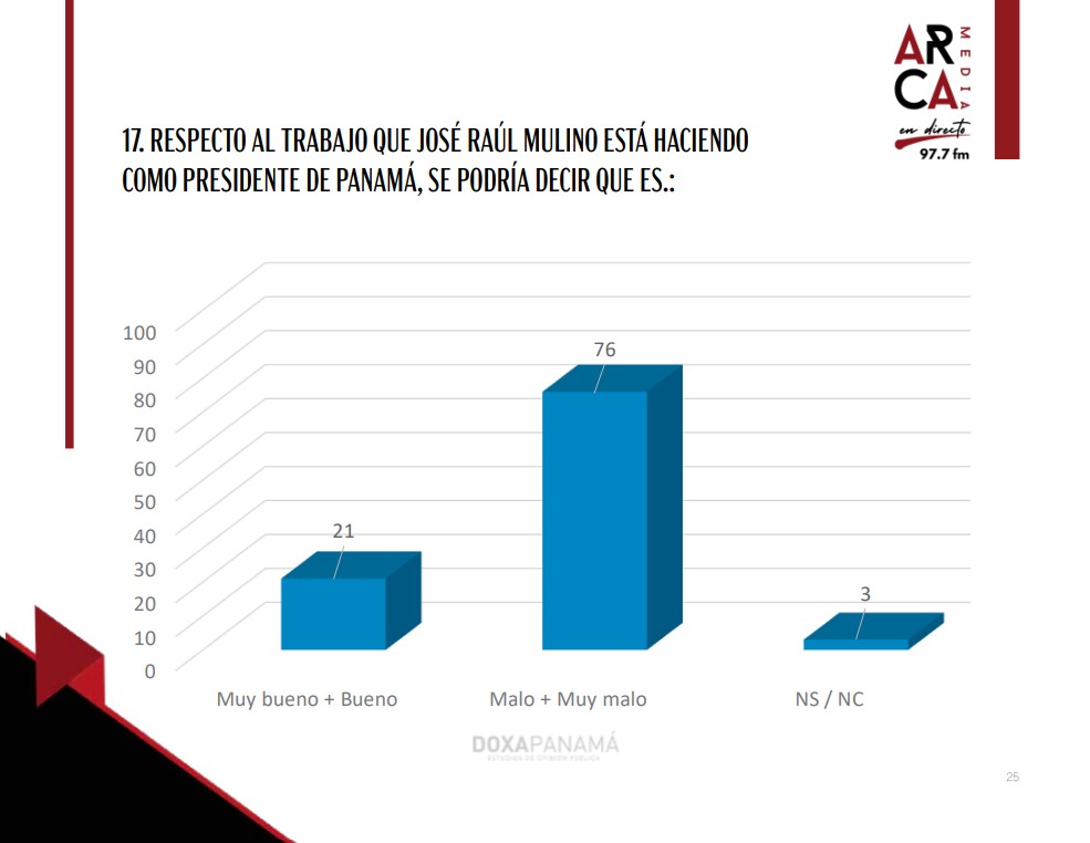 Un estudio reciente de la encuestadora Doxa Panamá, S.A. revela una fuerte desaprobación hacia la gestión del presidente, José Raúl Mulino, y su equipo de gobierno, en un contexto de creciente malestar económico y demanda de liderazgo firme.
