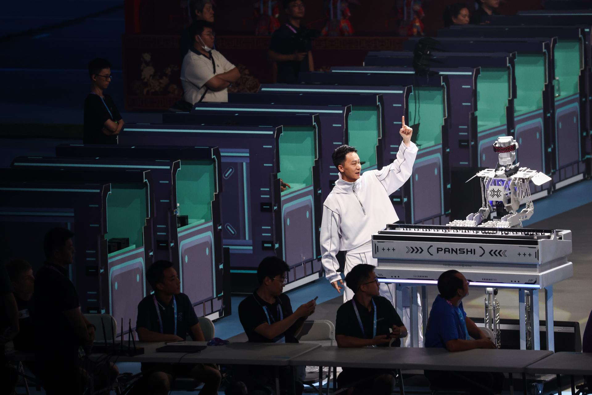 La ceremonia de apertura, celebrada ante un aforo cercano a las dos terceras partes del total de 12,000, incluyó una coreografía inicial liderada por 15 robots Booster T1 y K1, y un primer desfile en el que 25 robots con inteligencia artificial marcharon de forma autónoma en formación, sin control remoto.
