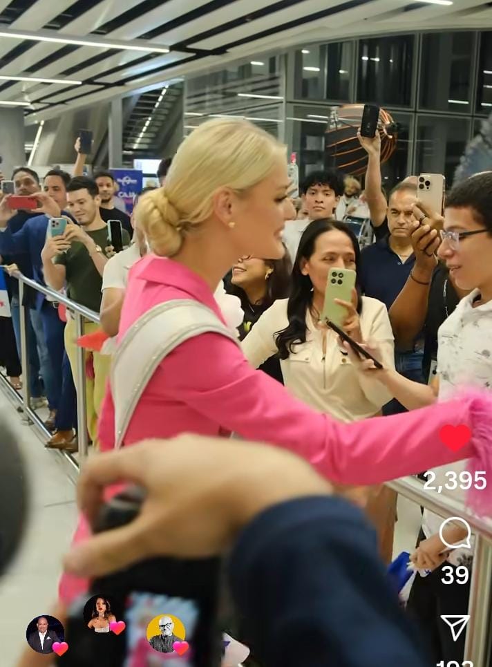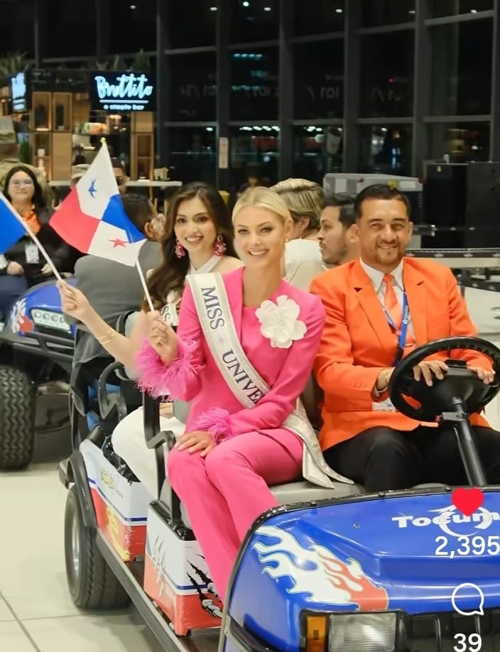 La actual Miss Universo, Victoria Kjaer, arribó al Aeropuerto Internacional de Tocumen en una visita oficial y fue recibida por una delegación encabezada por la candidata de Panamá en el certamen de belleza 2025, Mirna Caballini, en medio de música y bailes folclóricos, informó la Organización Señorita Panamá.