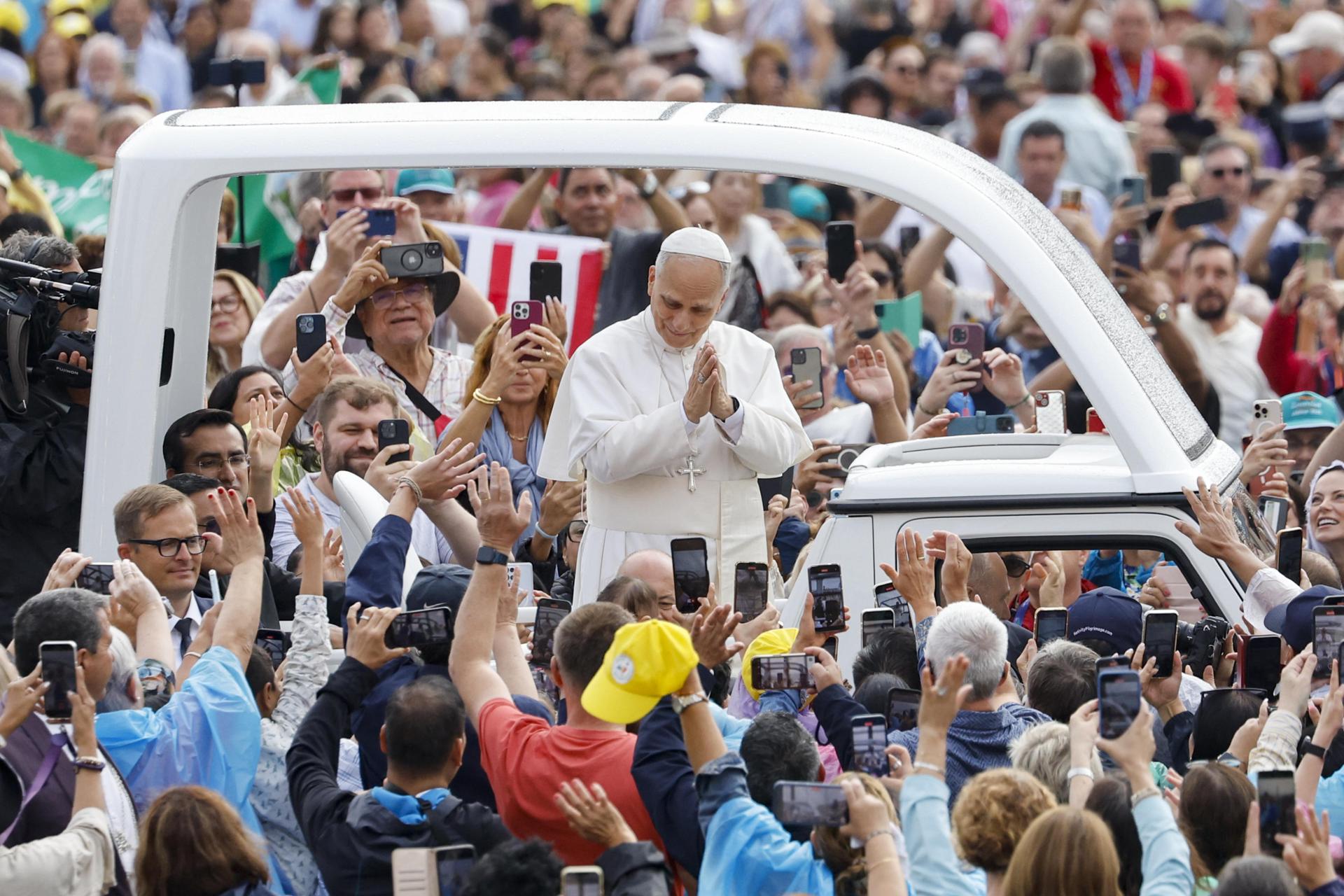 Mientras que al saludar a los fieles de habla hispana, el papa estadunidense y peruano instó a “dar voz a los sufrimientos de la humanidad” para que “se convierta en fuente de esperanza para todos”.