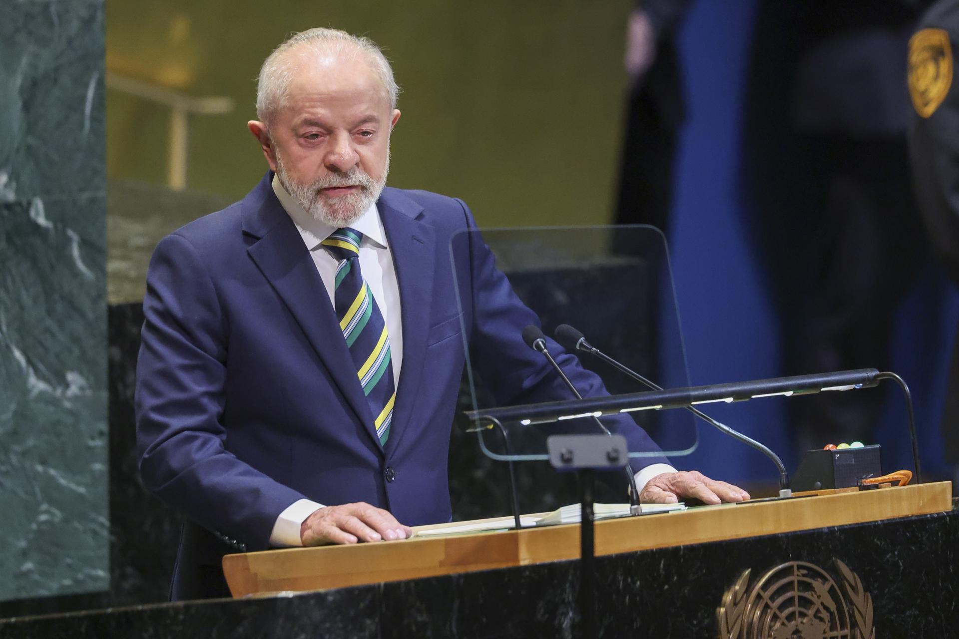 El presidente de Brasil, Luiz Inácio Lula da Silva, al intervenir este martes, 23 de septiembre, durante la 80ª sesión de la Asamblea General de las Naciones Unidas, en la sede de la ONU, en Nueva York (NY, EE.UU.). EFE/Sarah Yenesel