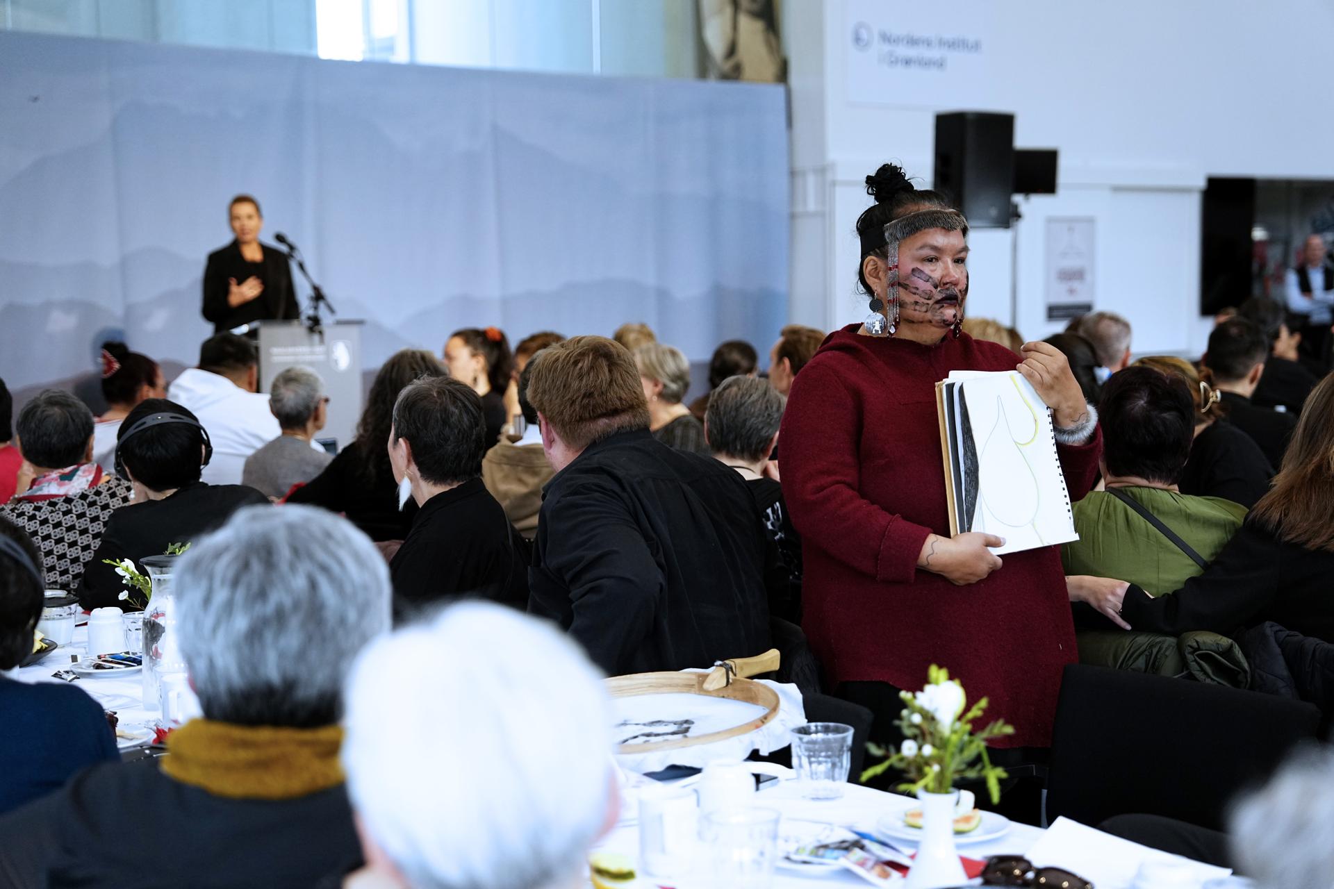Una mujer inuit durante el acto en el que la primera ministra danesa, Mette Frederiksen, pidió este miércoles en Nuuk (Groenlandia) perdón a las mujeres groenlandesas a las que se implantó espirales anticonceptivos. EFE/EPA/MADS CLAUS RASMUSSEN DENMARK OUT