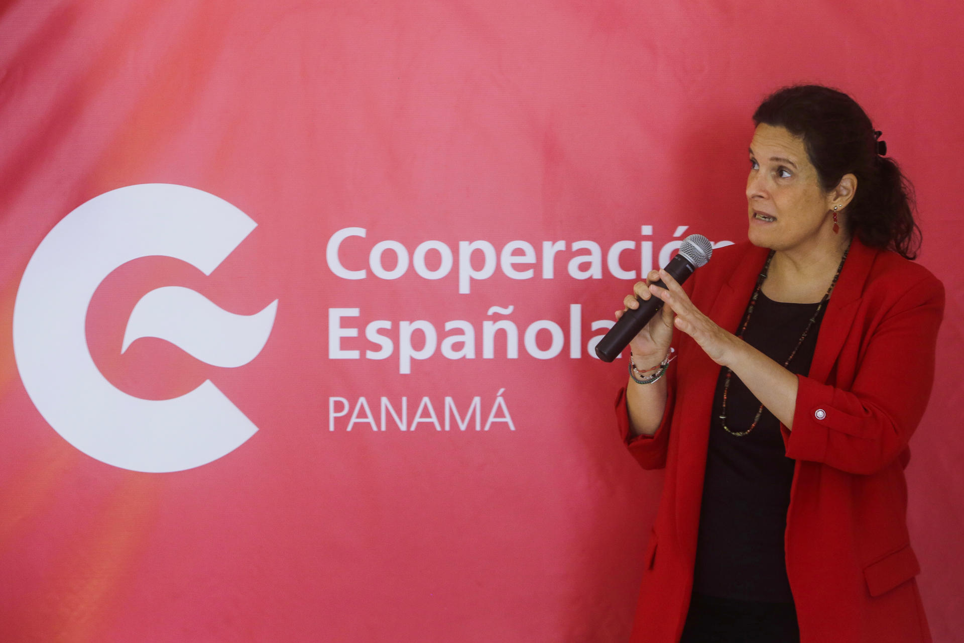 Fotografía de archivo de la coordinadora general de la Agencia Española de Cooperación Internacional para el Desarrollo (AECID) en Panamá, Itziar González, durante una conferencia, en Ciudad de Panamá. EFE/Carlos Lemos