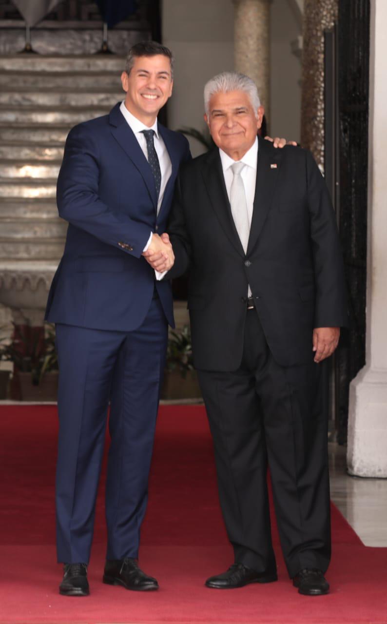 El mandatario de Paraguay, Santiago Peña Palacios, arribó la mañana de este lunes a Panamá, en visita de Estado, y se reunió con el presidente José Raúl Mulino en el Palacio de las Garzas.