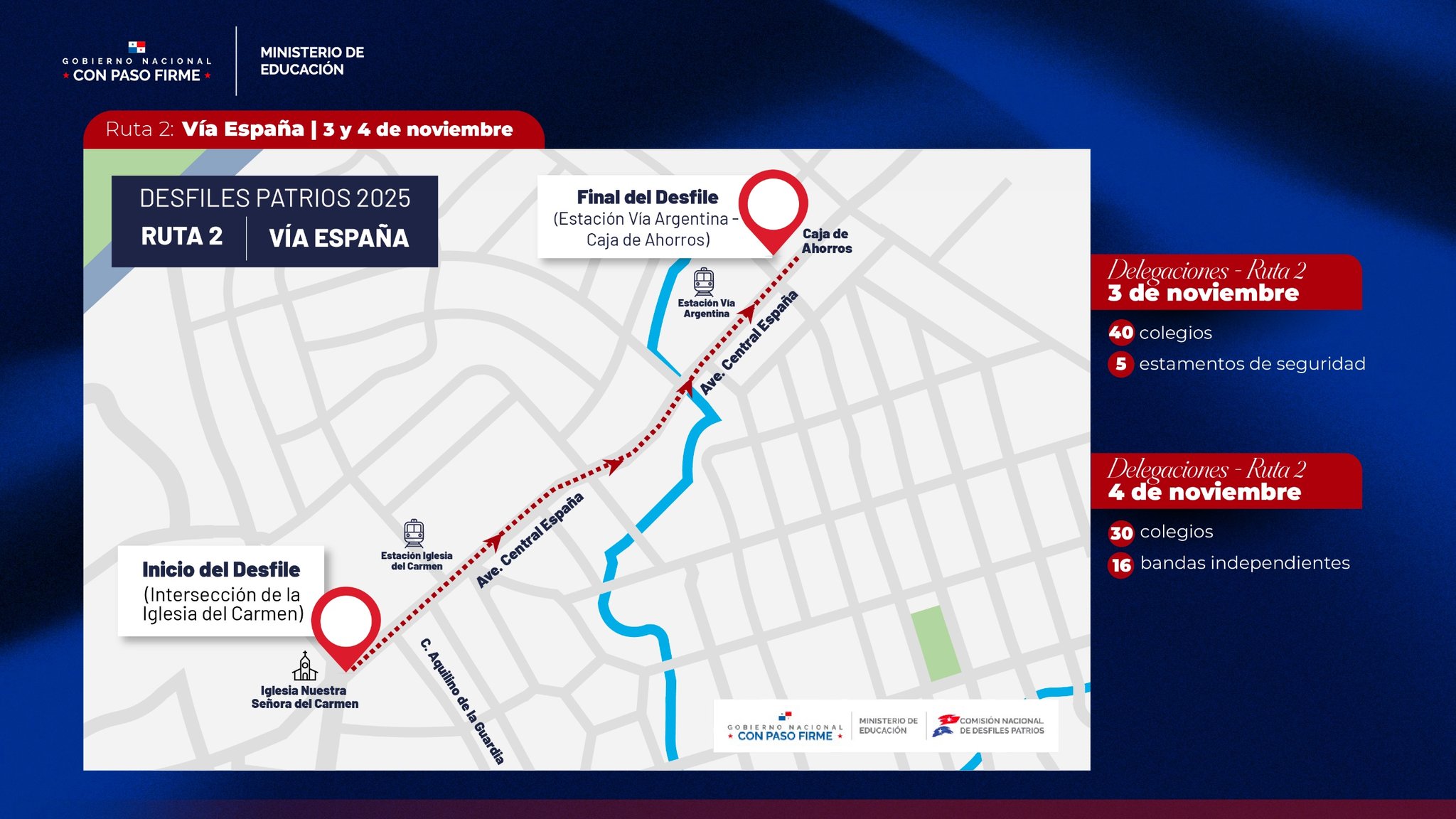 El Ministerio de Educación (MEDUCA) anunció este martes, un cambio en las rutas de los desfiles patrios que se realizarán los días 3 y 4 de noviembre en la ciudad capital.