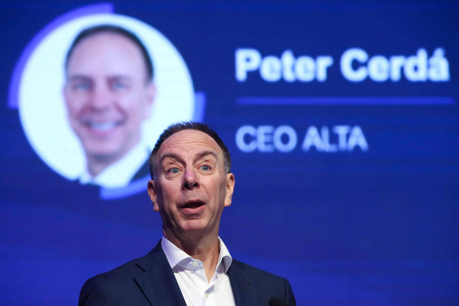 El director ejecutivo de la Asociación Latinoamericana y del Caribe de Transporte Aéreo (ALTA), Peter Cerdá, habla durante la inauguración de la vigésima primera Asamblea General Anual y Foro de Líderes de Aerolíneas de ALTA  en Lima (Perú). EFE/ Paolo Aguilar