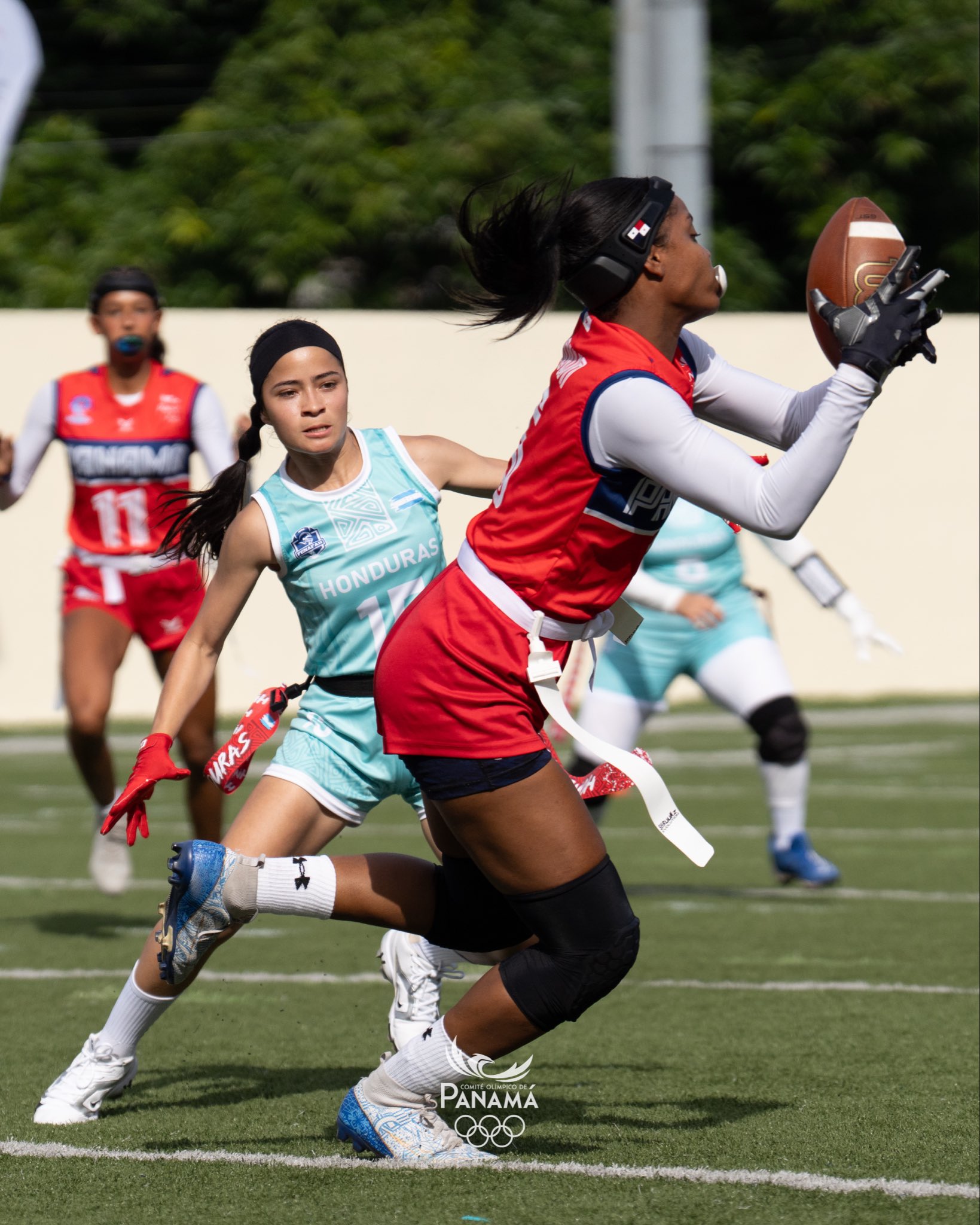 Las chicas no se quedaron atrás. La selección femenina panameña de flag football también triunfó. Le ganó 74-0 a Honduras en su primer compromiso.