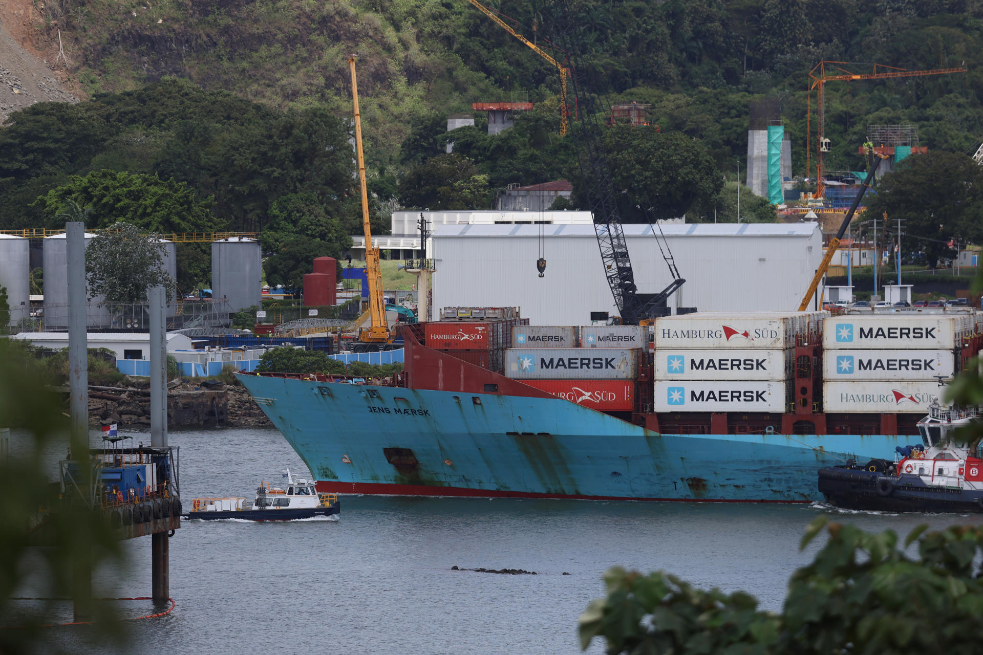 Un buque portacontenedor llega al puerto de Balboa este lunes, en Ciudad de Panamá (Panamá).  EFE/ Carlos Lemos
