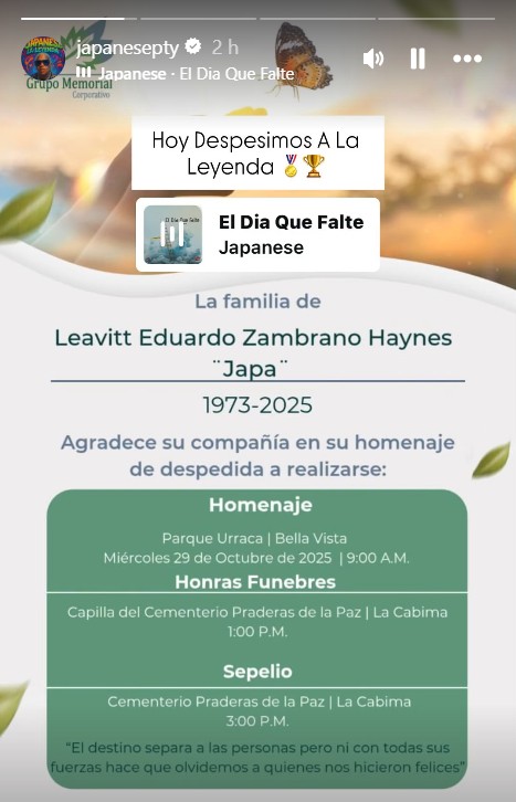 El Parque Urracá fue el escenario este miércoles, de una emotiva despedida en cuerpo presente, para el cantante panameño de música urbana, Leavitt Eduardo Zambrano Haynes, conocido artísticamente como Japanese.