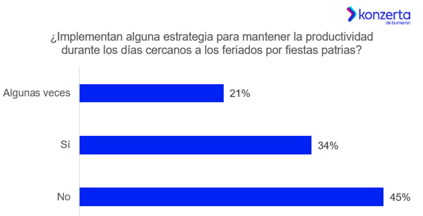 Sin embargo, el 52% de los encuestados afirma que sus empresas no realizan ajustes en las metas de productividad durante los feriados, frente al 25% que sí lo hace y un 23% que indica que estos ajustes se aplican solo en algunas ocasiones.