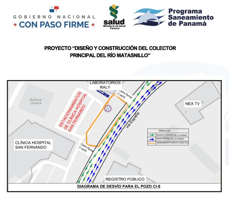 El Programa Saneamiento de Panamá informó que inició desde este miércoles, la construcción del pozo No.8, que implica cierres parciales en la vía España, frente a los estacionamientos del Hospital San Fernando.