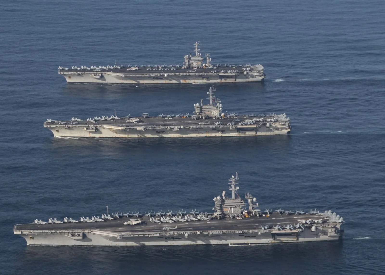 El portaviones Gerald Ford, con su flotilla adyacente de barcos, se une a los seis navíos ya presentes en el Caribe y a otro en el Pacífico.