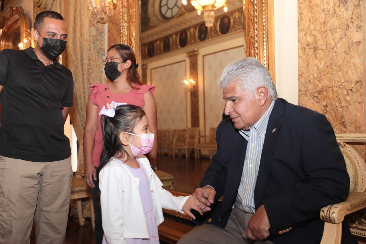 A 15 días de la intervención, Leah fue recibida este jueves en el Palacio de las Garzas por el presidente de la República, José Raúl Mulino.