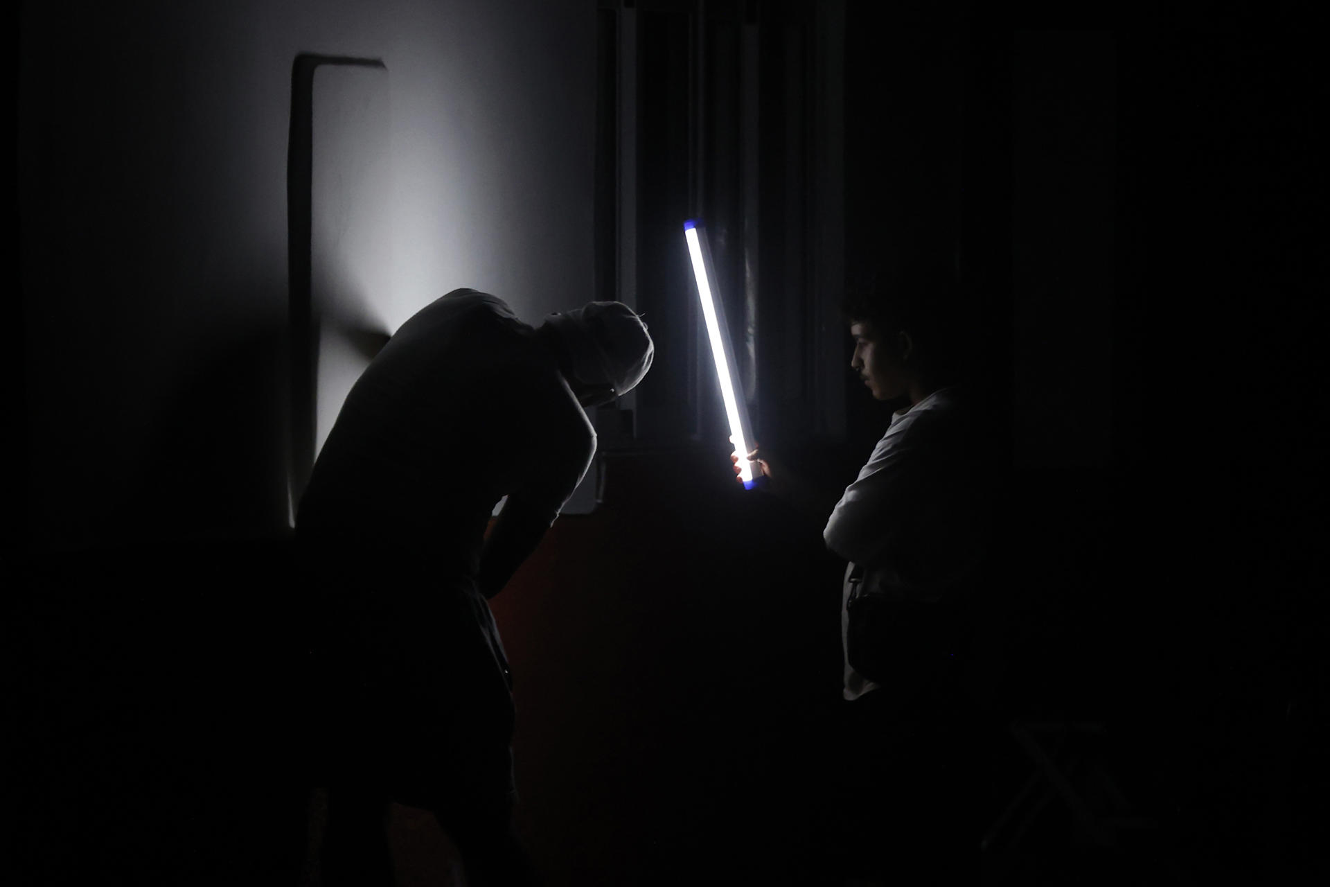 Personas alumbran con una lámpara durante un corte eléctrico este miércoles, en La Habana (Cuba). EFE/ Ernesto Mastrascusa