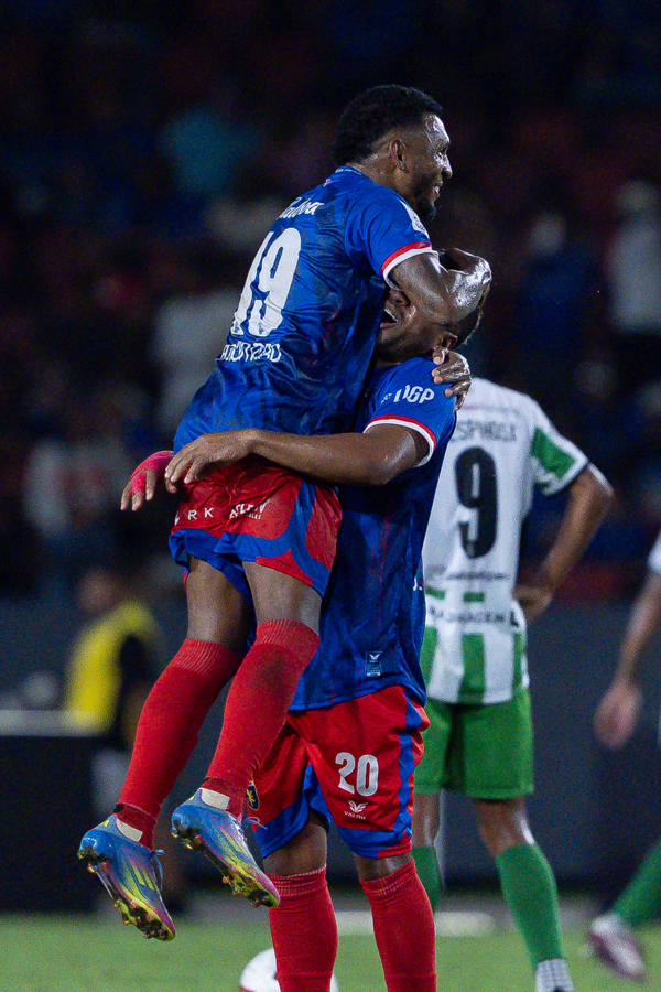 Jugadores de Plaza Amador celebran un gol en la final de la Liga Panameña entre Plaza Amador y Alianza FC en el estadio Rommel Fernández Gutiérrez. EFE/ Eliecer Aizprúa Banfield.