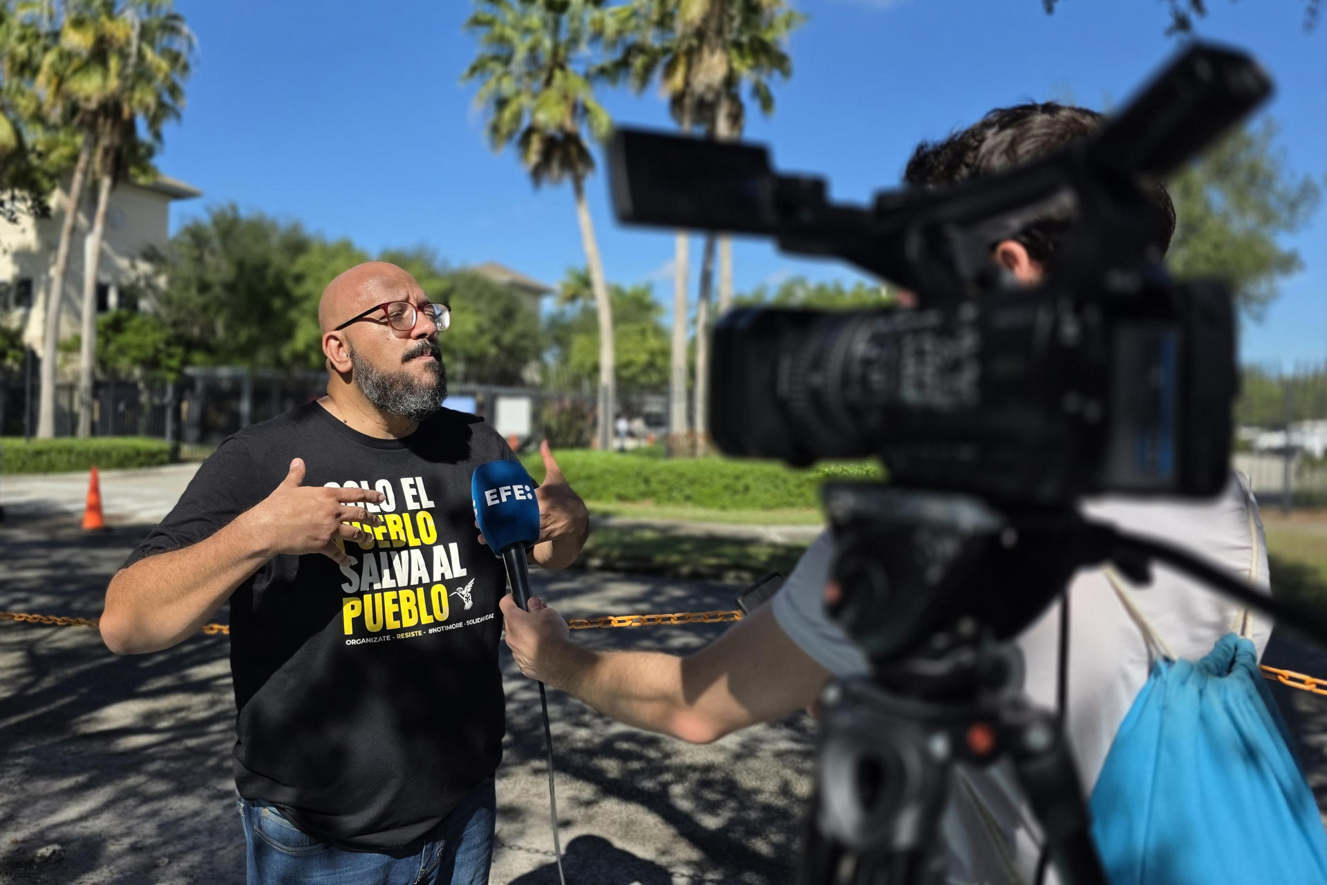 “Entre las telenovelas y el partido de fútbol salen estos anuncios diciendo ‘vamos a cazarlos, vamos a enjaularlos y vamos a deportarlos'”, lamentó el codirector de Semillas Colombia, Carlos Naranjo, frente a un centro del ICE en Miramar, en el condado Broward, al norte de Miami.