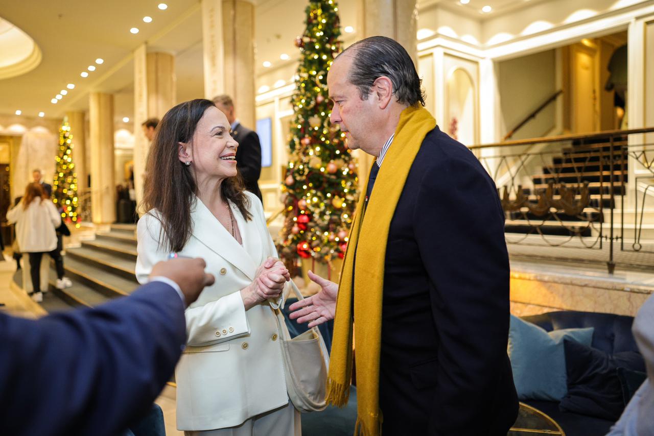 La Premio Nobel de la Paz 2025 y líder opositora venezolana, María Corina Machado, sostuvo su primer encuentro al llegar a Oslo, Noruega, luego de casi un año de estar bajo la clandestinidad.