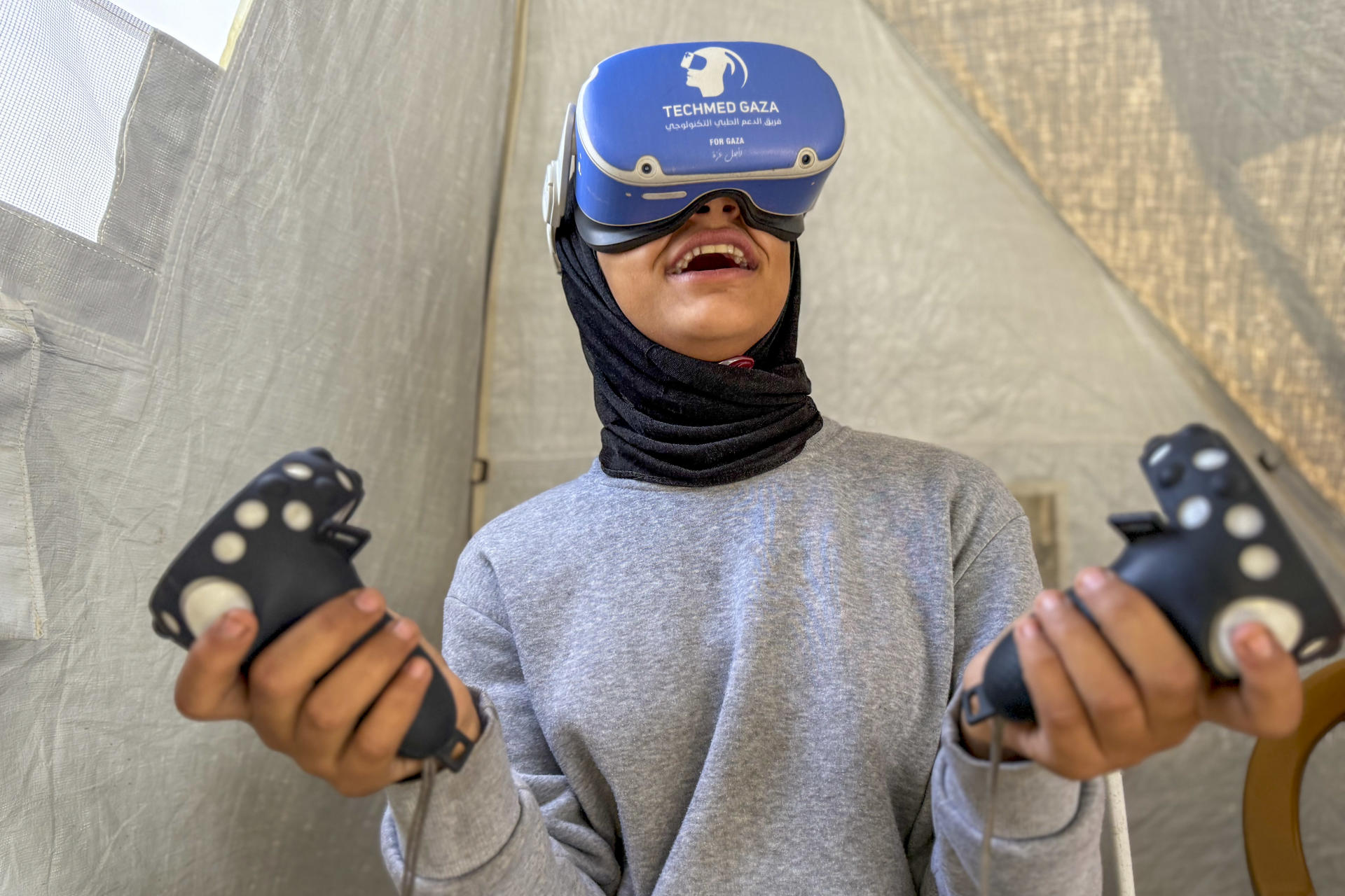 Una iniciativa en el centro del enclave utiliza videojuegos y gafas de realidad virtual para tratar a niños heridos por la ofensiva militar