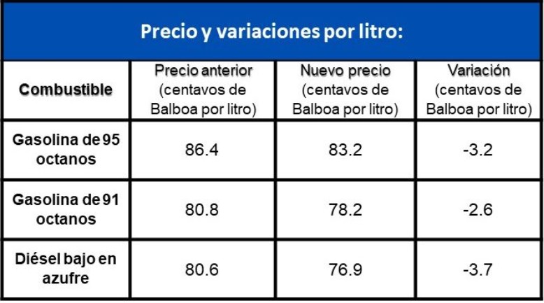 La gasolina de 95 octanos bajó $0.03 por litro, quedando su precio en $0.83; mientras que la de 91 octanos también baja $0.02, quedando en $0.78 el litro.