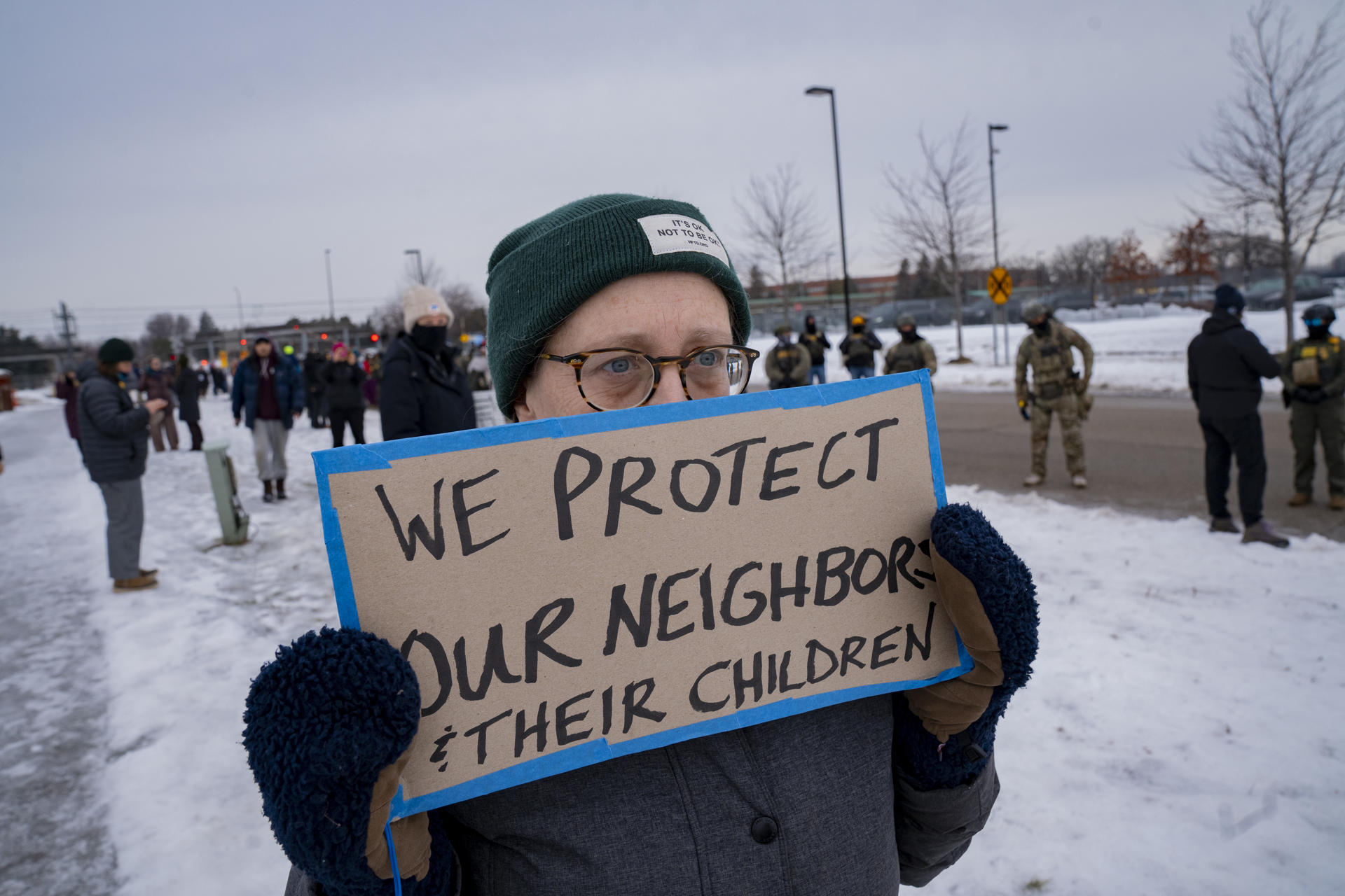 A primera hora de la mañana, hora local, decenas de manifestantes se concentraron frente al Bishop Henry Whipple Federal Building, el edificio federal donde se encuentran los agentes antiinmigración.