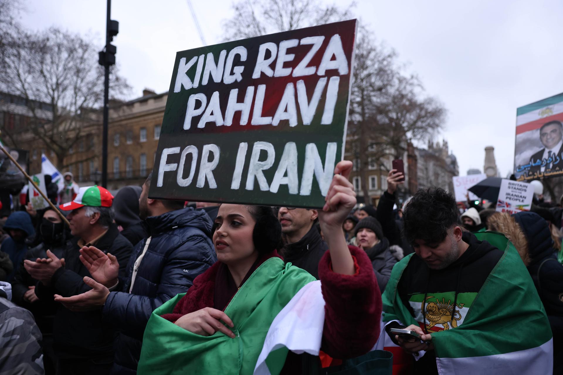 Manifestantes queman un retrato del líder supremo iraní, Ali Jamenei, durante una manifestación en apoyo al actual movimiento de protesta en Irán, frente a Downing Street en Londres. EFE/NEIL HALL