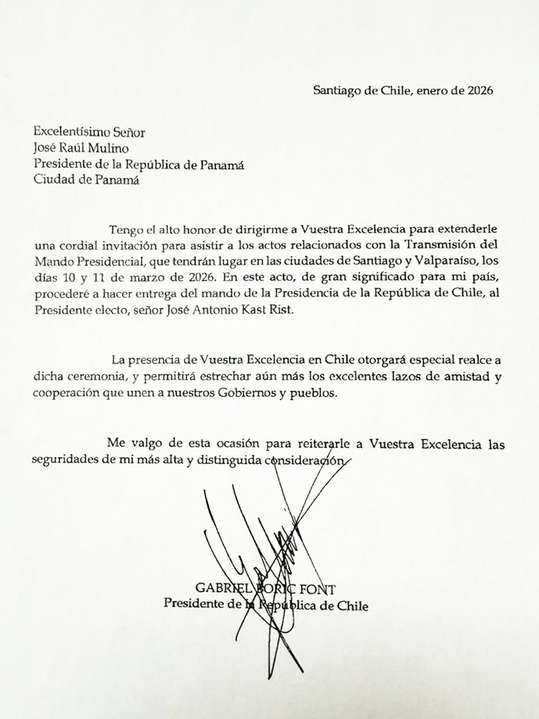 Mulino señaló que la visita del presidente electo chileno se dará antes de su toma de posesión, prevista para el mes de marzo, a la cual él mismo asistirá tras recibir la invitación oficial a la Transmisión de Mando Presidencial, que se celebrará en las ciudades de Santiago y Valparaíso los días 10 y 11 de marzo del 2026.