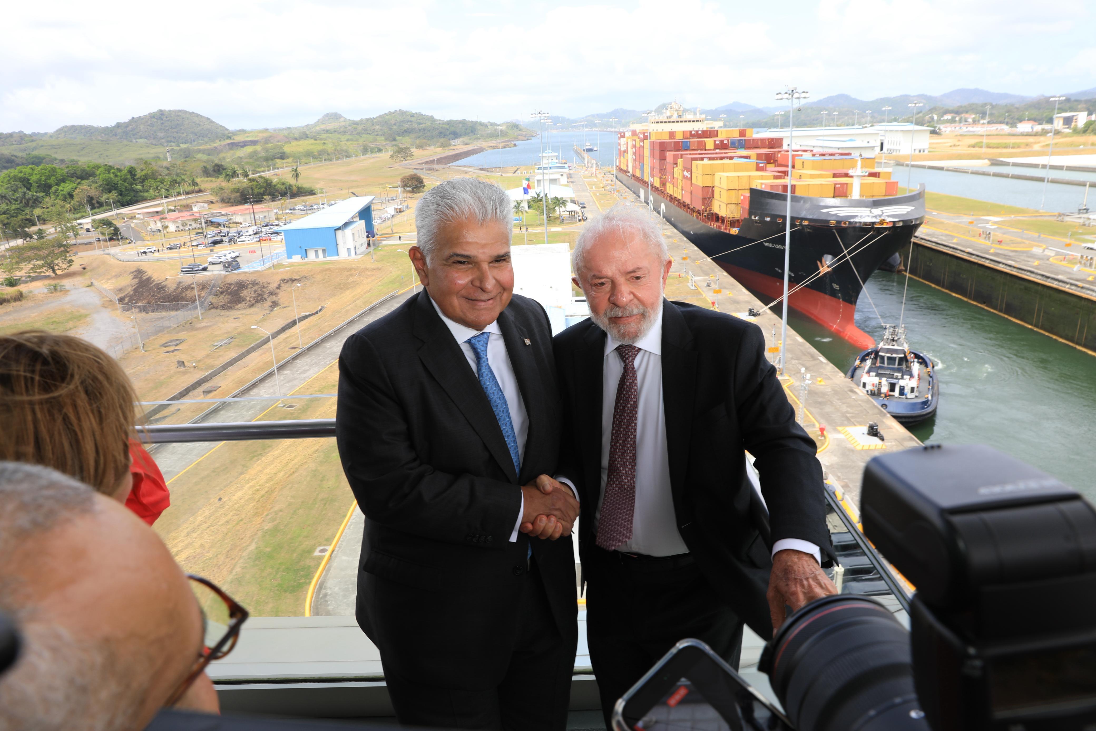 Posteriormente, la delegación se trasladó a la torre de control, donde el presidente de Brasil, Luiz Inácio Lula da Silva, acompañado por el presidente Mulino, tuvo el honor de accionar la apertura de las compuertas para permitir el tránsito del buque portacontenedores MSC Leo VI, que cubre la ruta entre Florida y Corea.