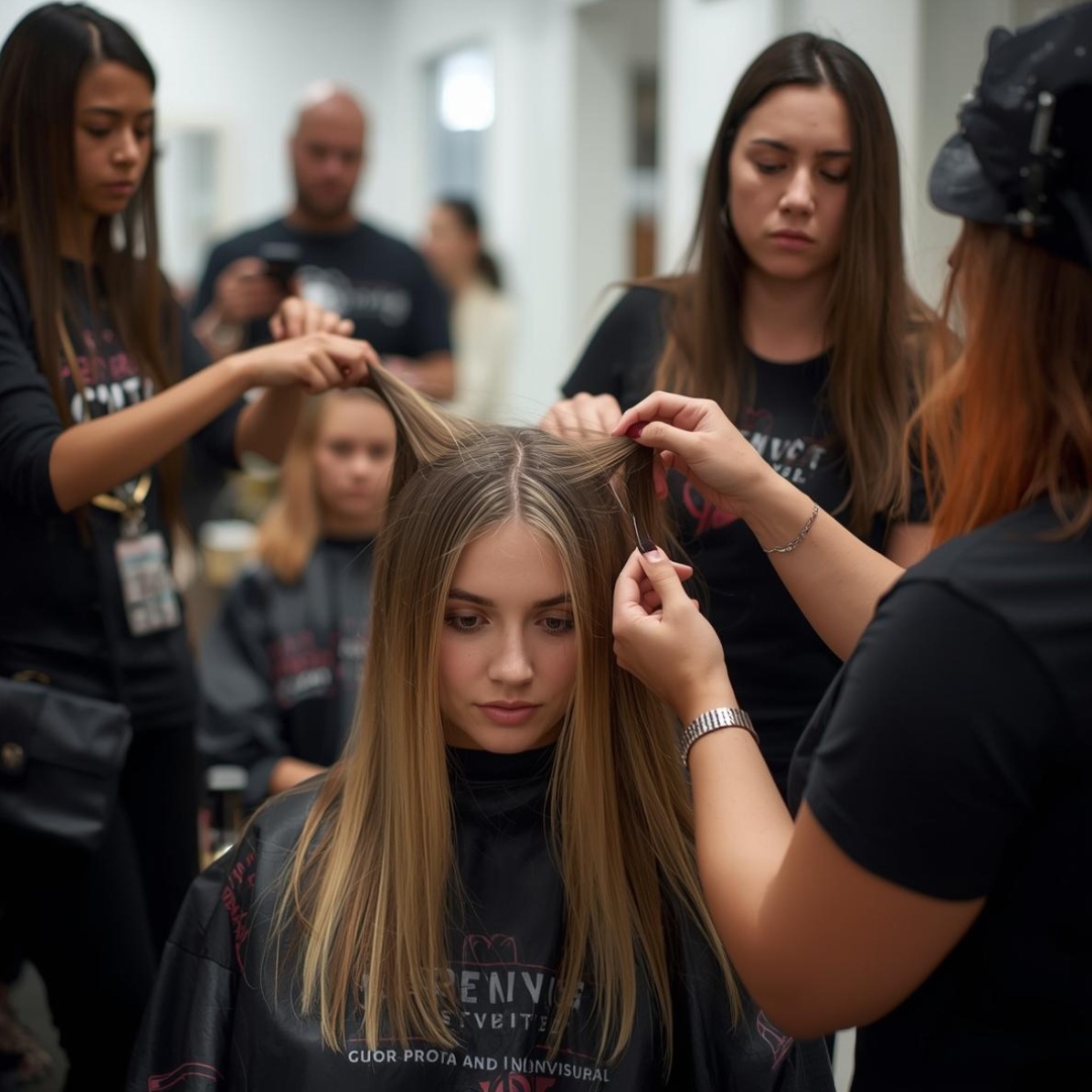 Las extensiones de pelo pueden estar fabricadas con fibras sintéticas y/o materiales de origen biológico, incluido el cabello humano, y a menudo se tratan con sustancias químicas para hacerlas resistentes al fuego, impermeables o antimicrobianas.