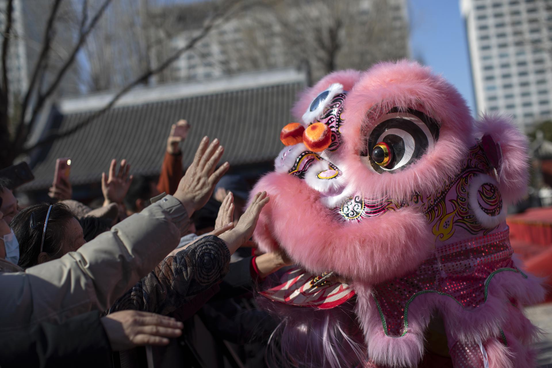 Personas participan en la danza del león en el templo Beiding Niangniang, en el día del Año Nuevo Lunar chino en Pekín (China) El Año Nuevo chino, EFE/ Andrés Martínez Casares